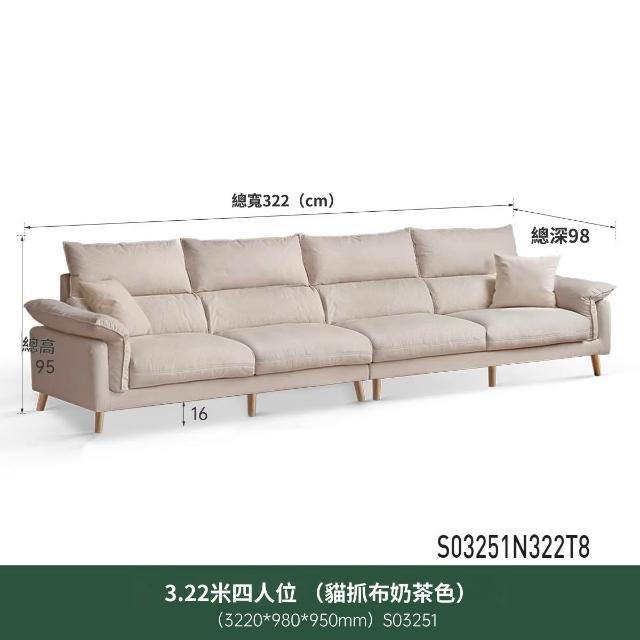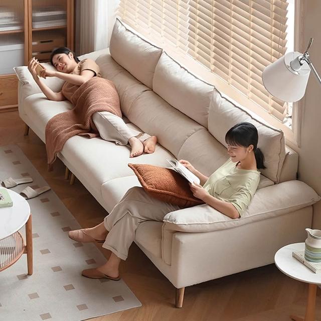 米期精品 2025新款布藝沙發客廳簡約三人位真皮沙發家用白色貓抓高腳布沙發