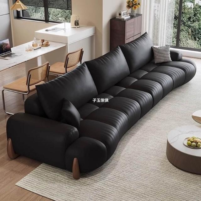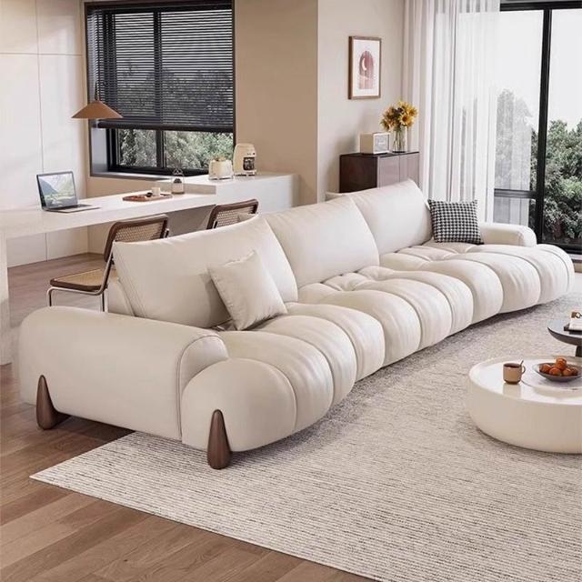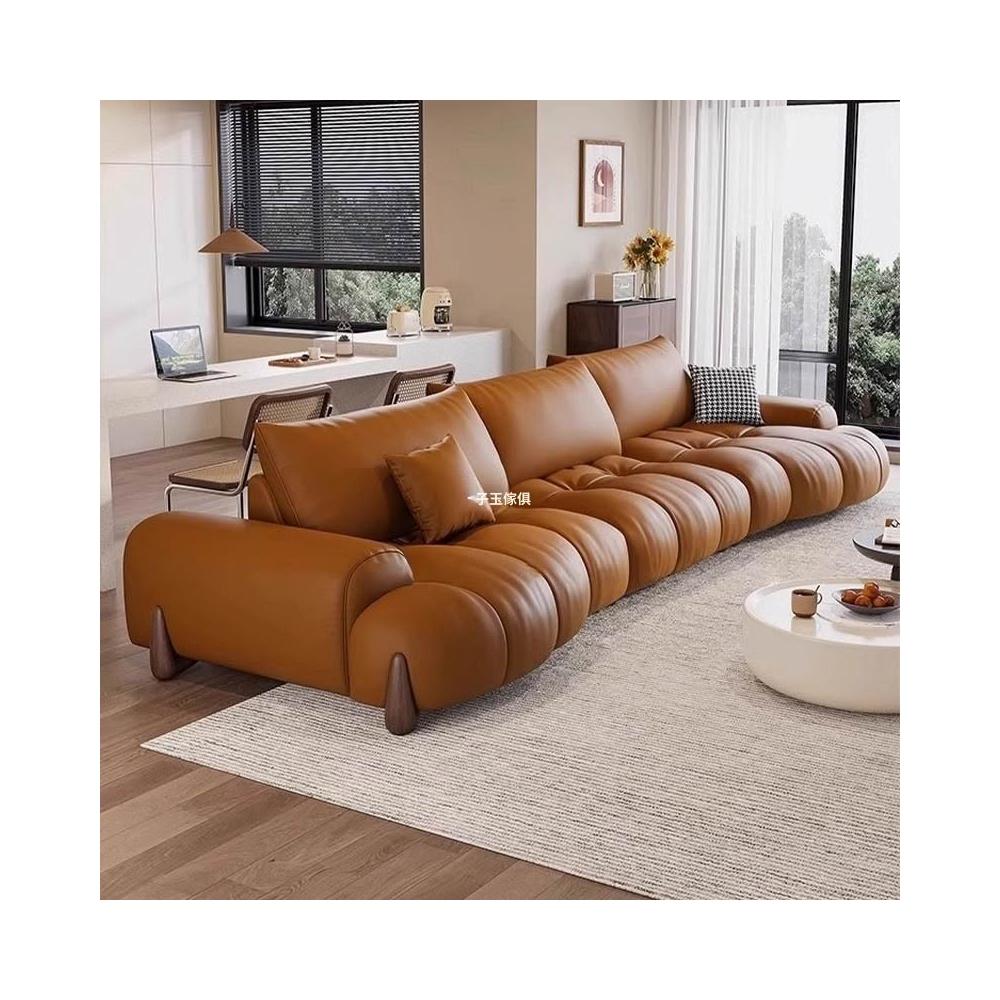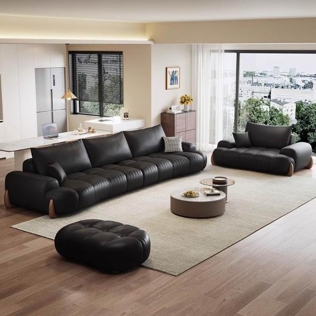 米期精品 網紅新款復古風真皮沙發客廳2025新款爆款泡芙意式極簡異形皮沙發