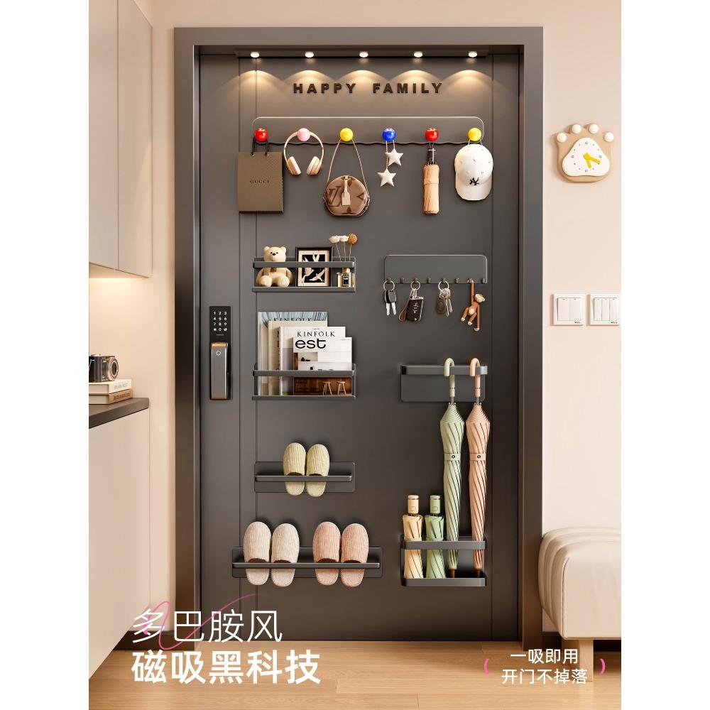 磁吸置物架入戶門後收納鑰匙掛鉤門上玄關拖鞋雨傘架磁鐵置物套裝