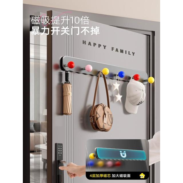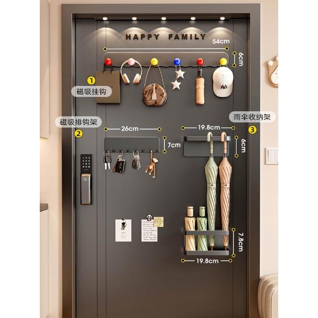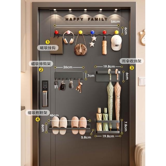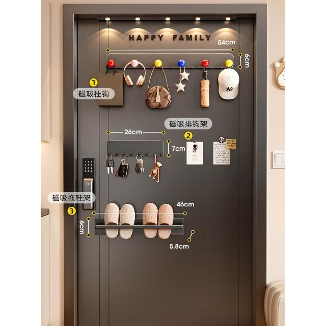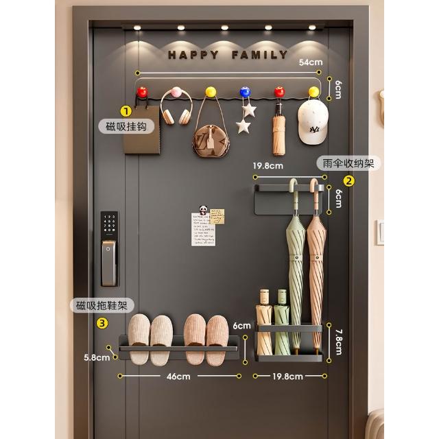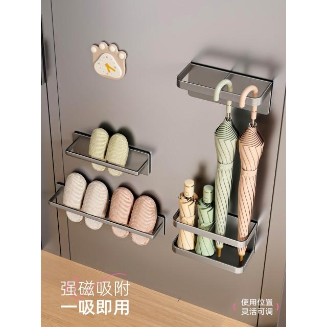 磁吸置物架入戶門後收納鑰匙掛鉤門上玄關拖鞋雨傘架磁鐵置物套裝
