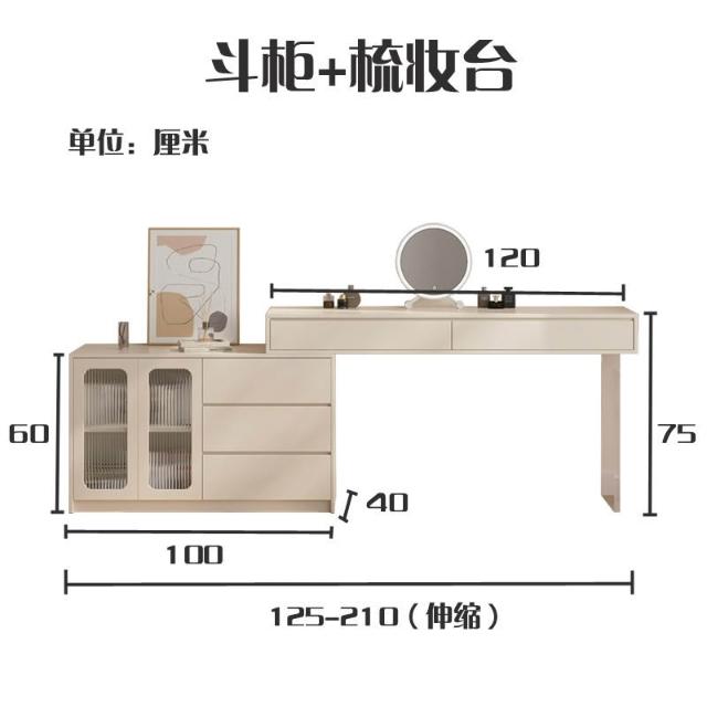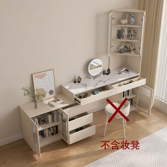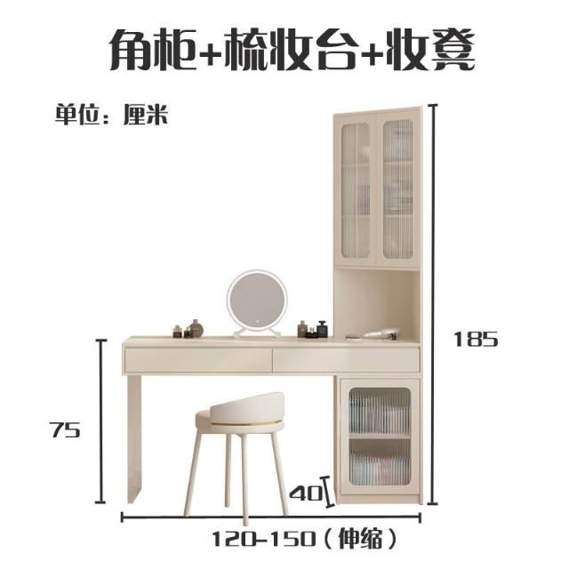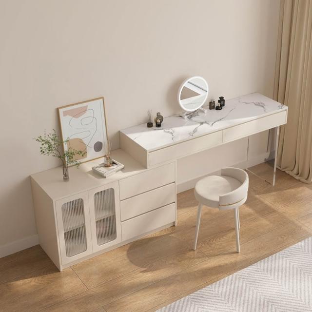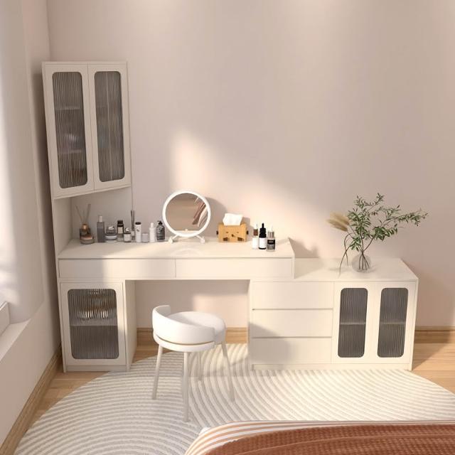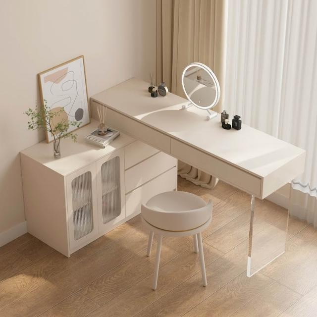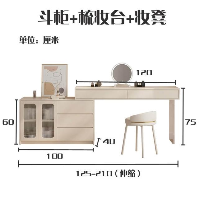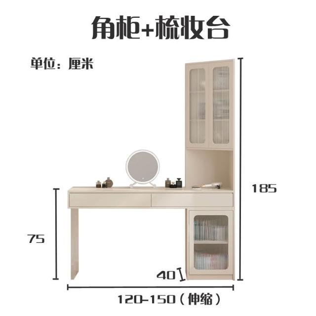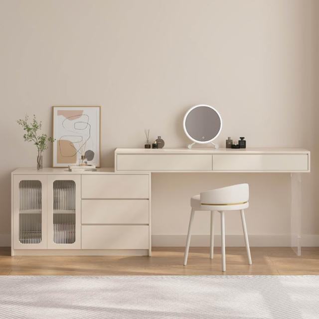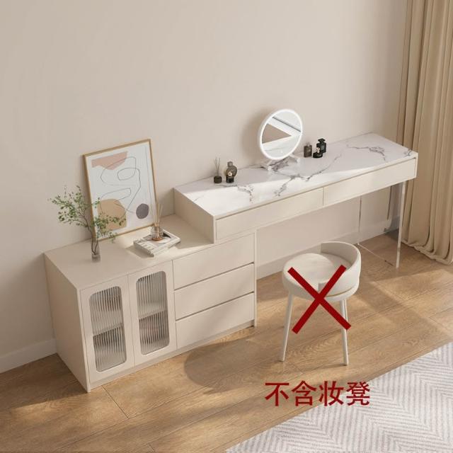 簡約現代卧室梳妝台奶油風床尾收納化妝桌斗櫃一體組合伸縮小戶型