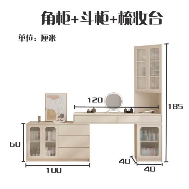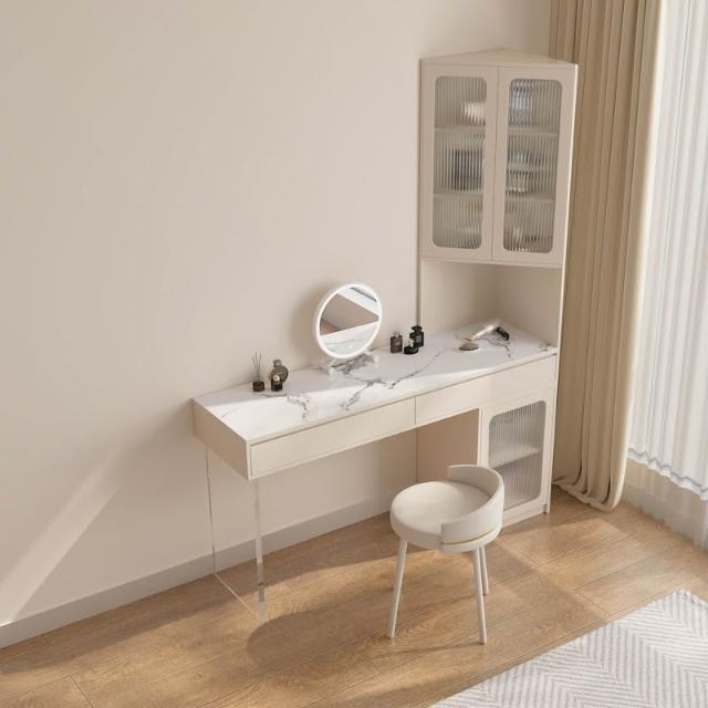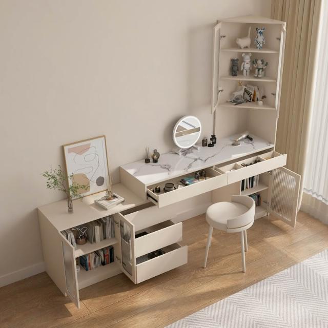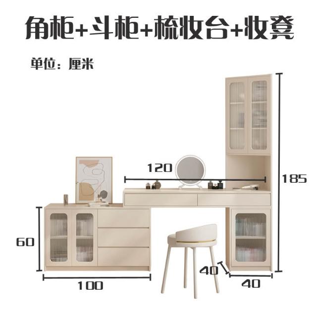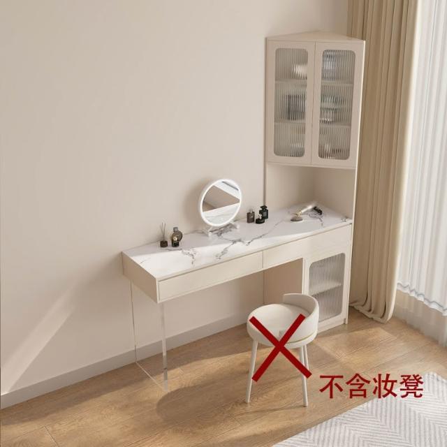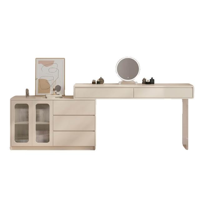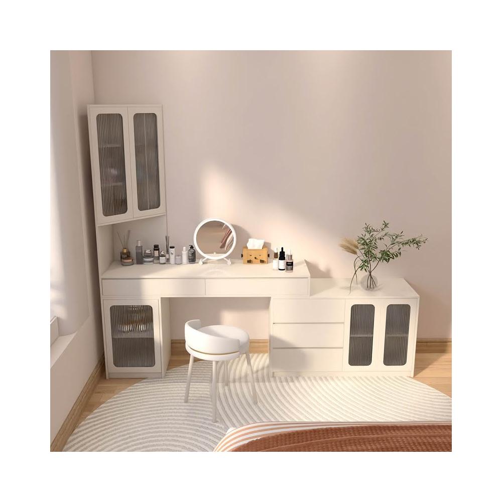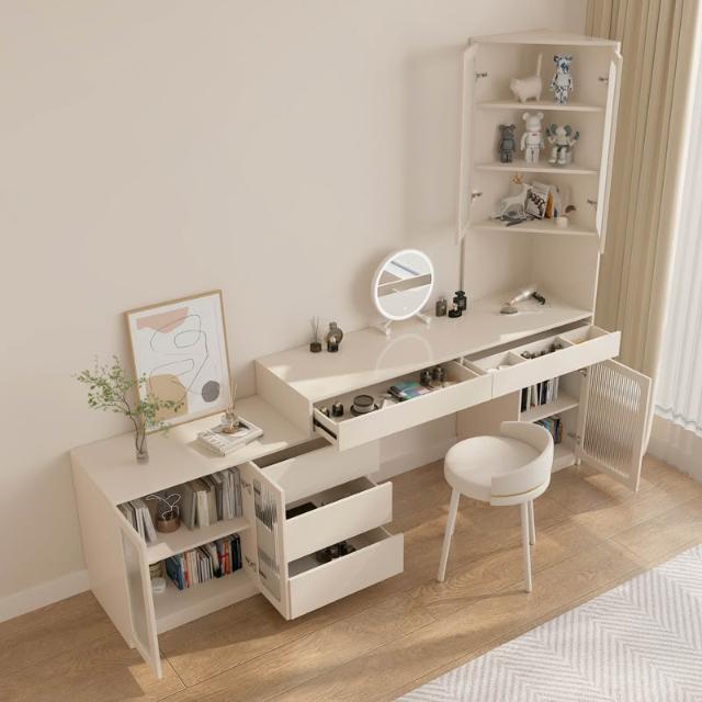 簡約現代卧室梳妝台奶油風床尾收納化妝桌斗櫃一體組合伸縮小戶型