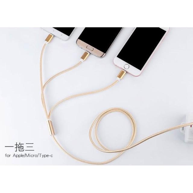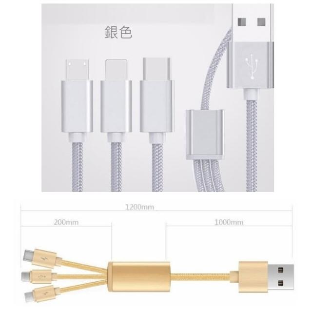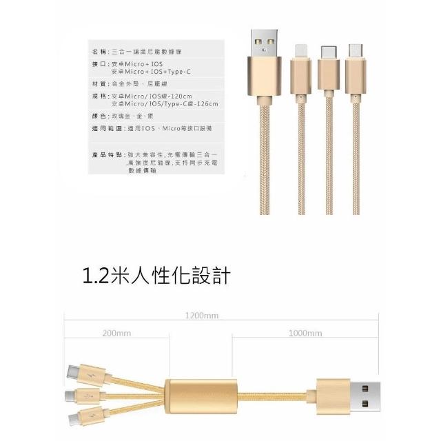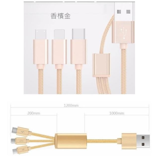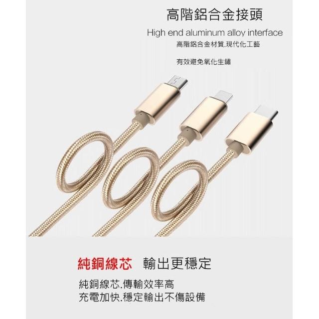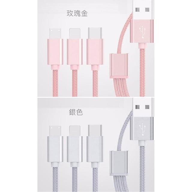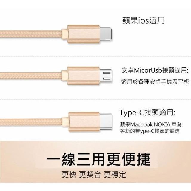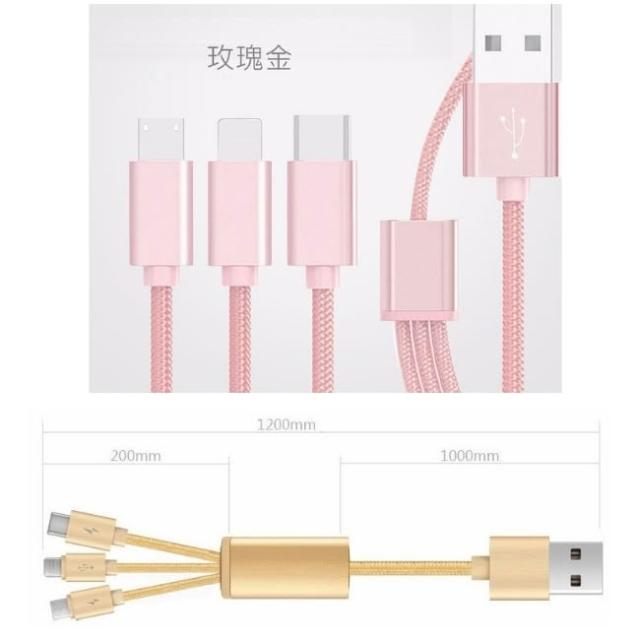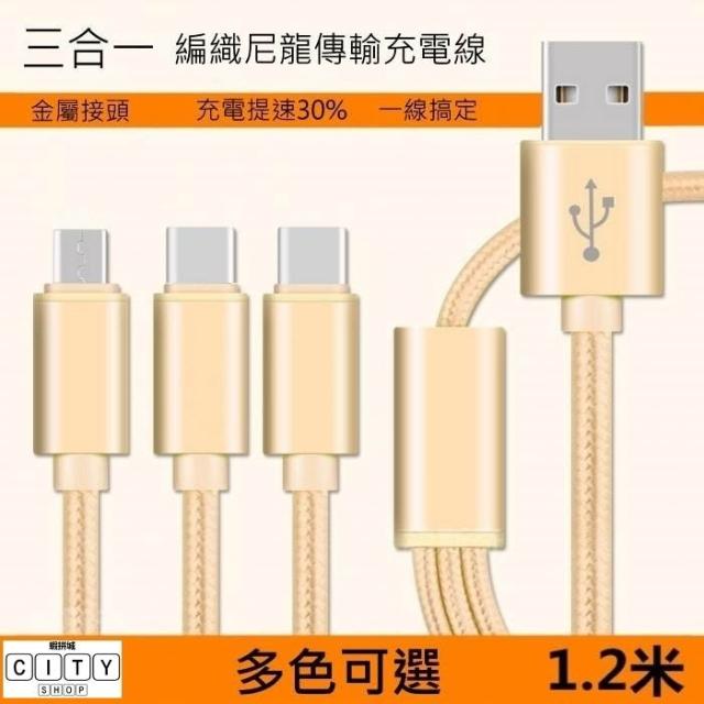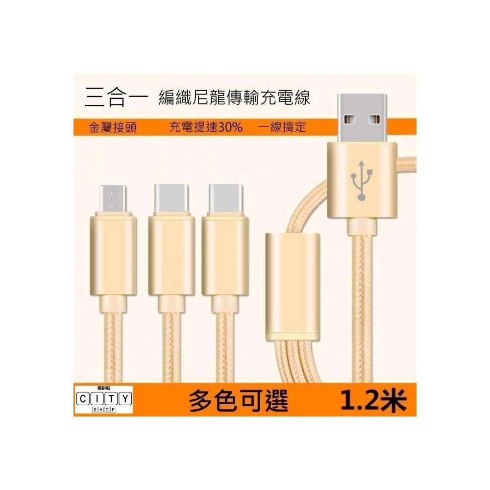 三合一 金屬尼龍編織 傳輸線 充電線 type c microusb 充電線 一拖三 充電線