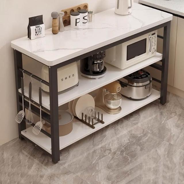 岩板廚房置物架落地多層微波爐收納窄架切菜桌工作臺多功能餐邊櫃