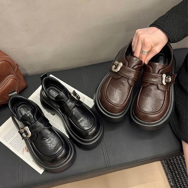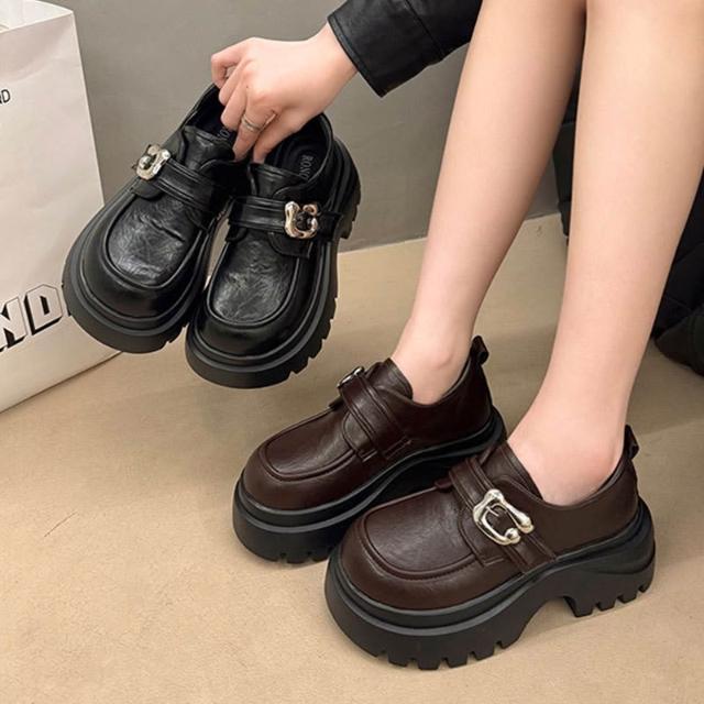 韓版厚底軟皮樂福鞋女2026年春秋新款百搭小個子增高配裙子小皮鞋 LIORA(莱奥拉)
