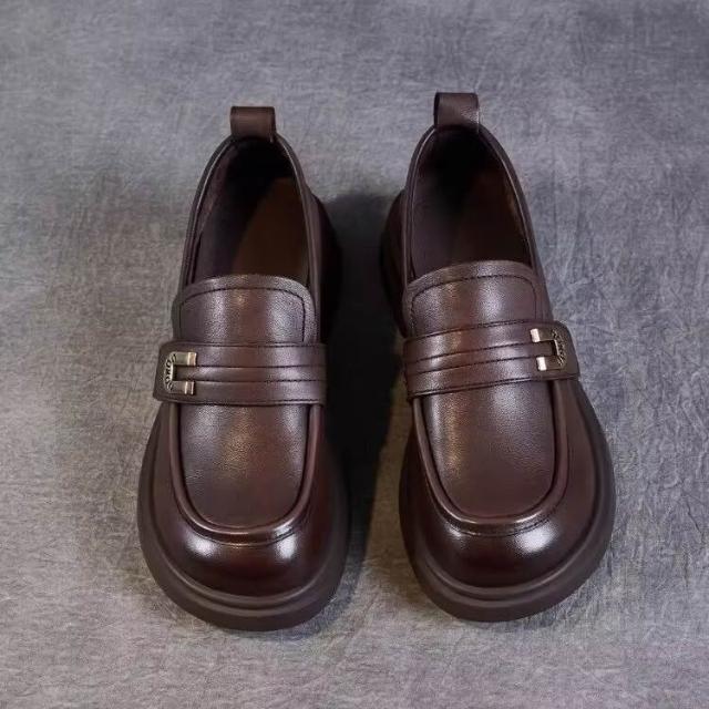 2026春季平底樂福鞋女新款漆皮英倫風蝴蝶結通勤黑色厚底小皮鞋女 LIORA(莱奥拉)