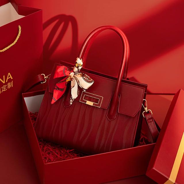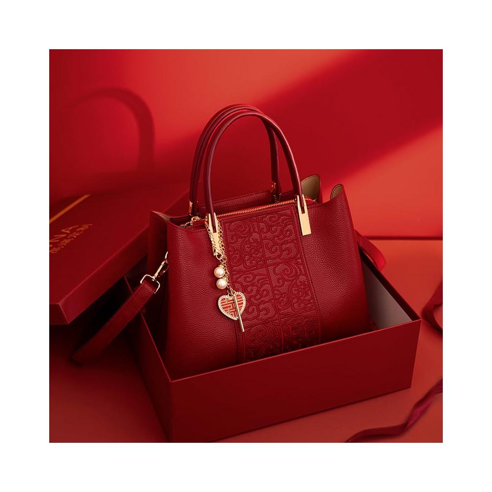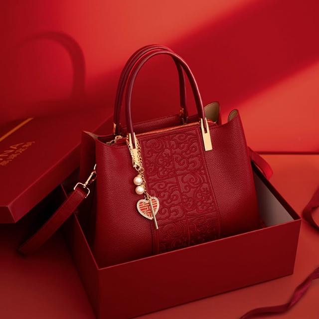 新款包包 國風刺繡紅色包包大容量手提包新娘結婚包禮物中年女士媽媽旗袍包 LIORA(莱奥拉)