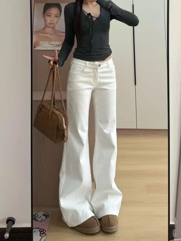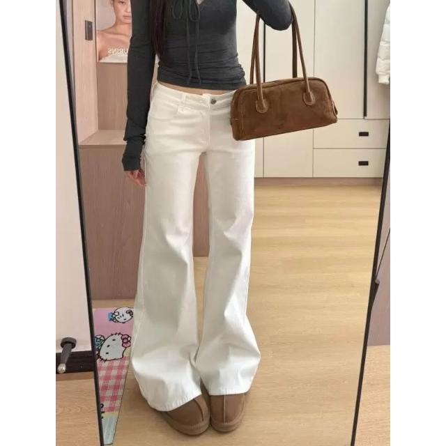 小個子美式微喇牛仔褲女新款不貼腿辣妹低腰顯瘦喇叭褲
