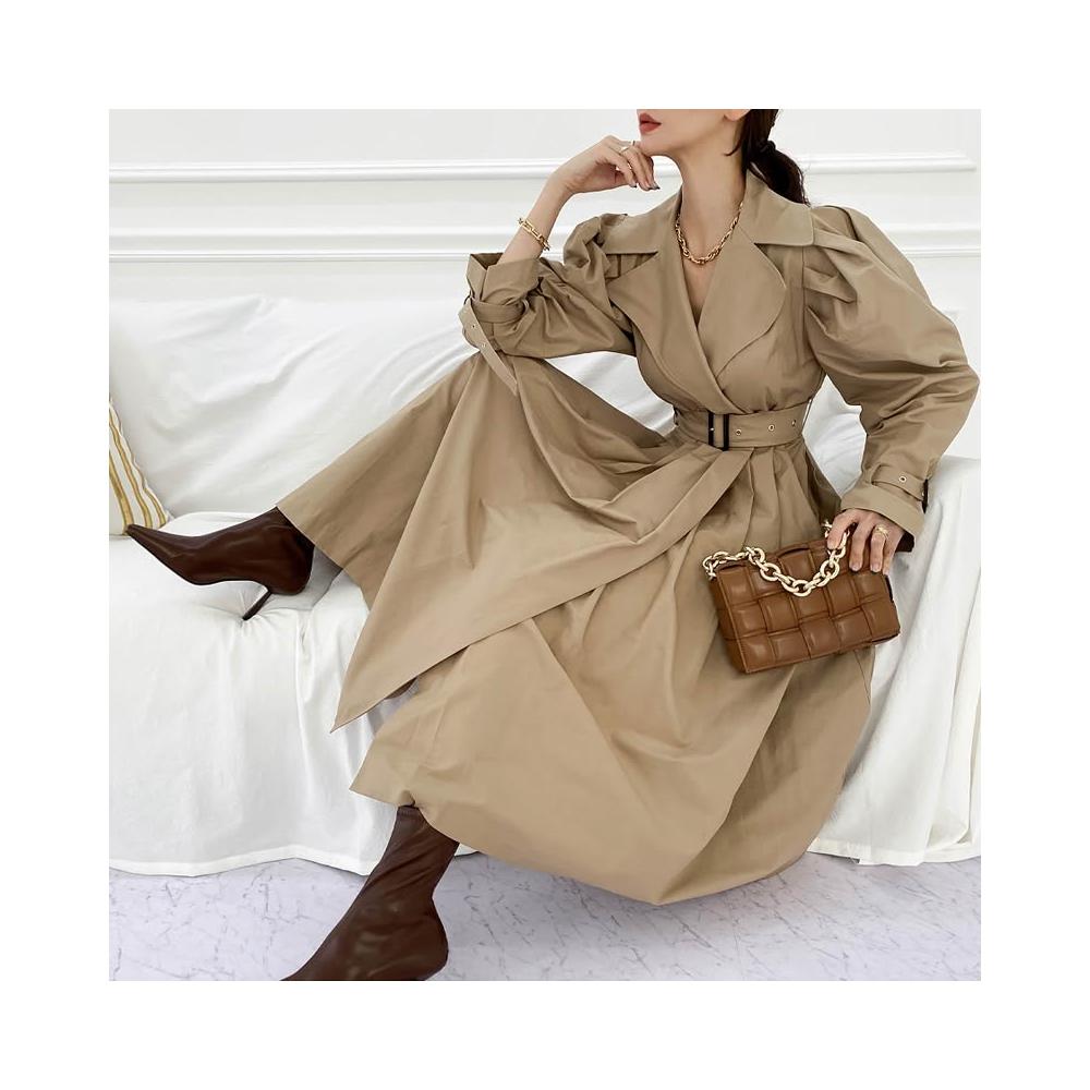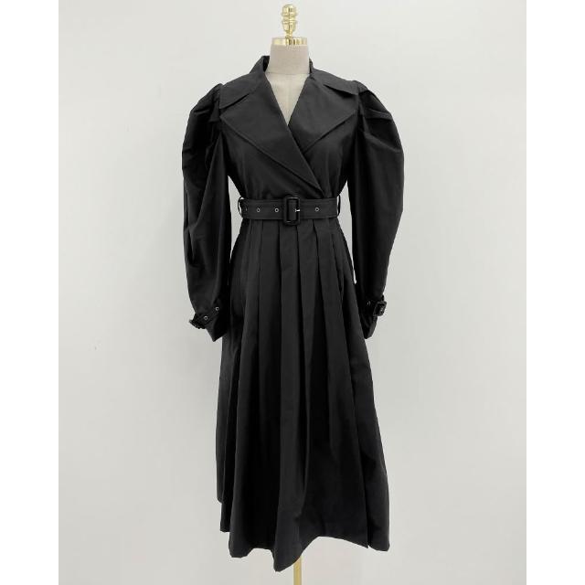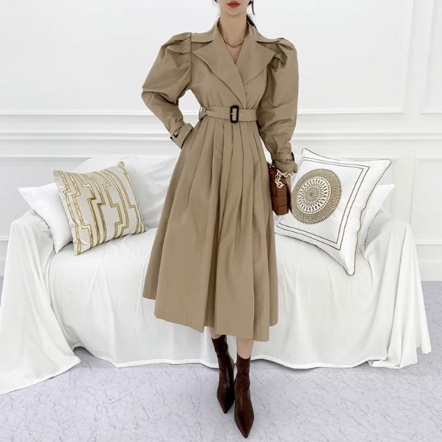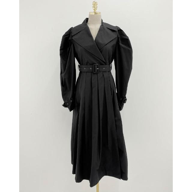 DAILY - MOOD 尺寸已更新 韓國chic 法式泡泡袖系帶收腰顯瘦百褶風衣連衣裙