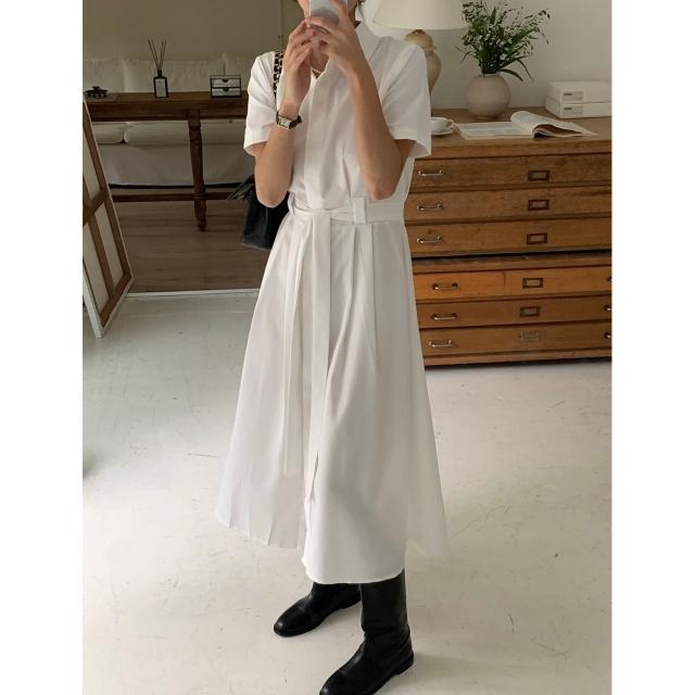 DAILY - MOOD 韓國chic 法式氣質系帶收腰顯瘦連衣裙