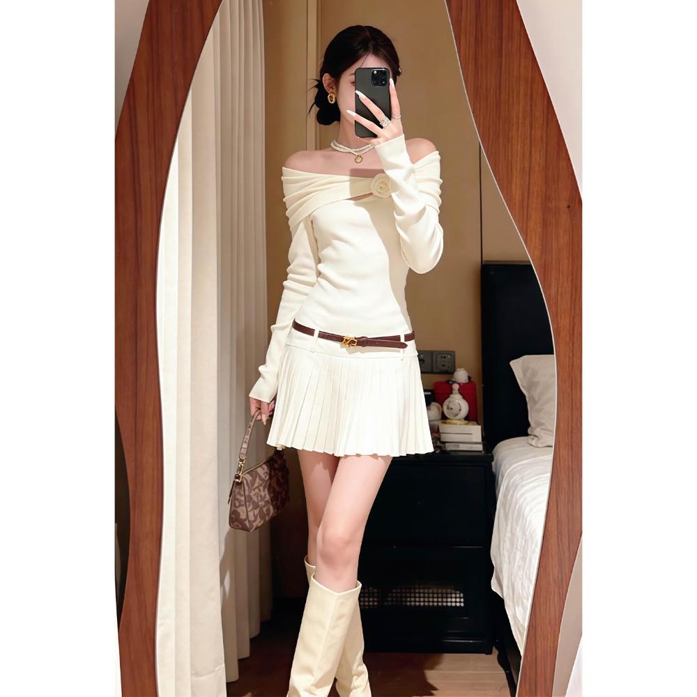 DAILY - MOOD 白色一字肩連衣裙子女早春2026新款超火新年戰袍巨好看穿搭一整套