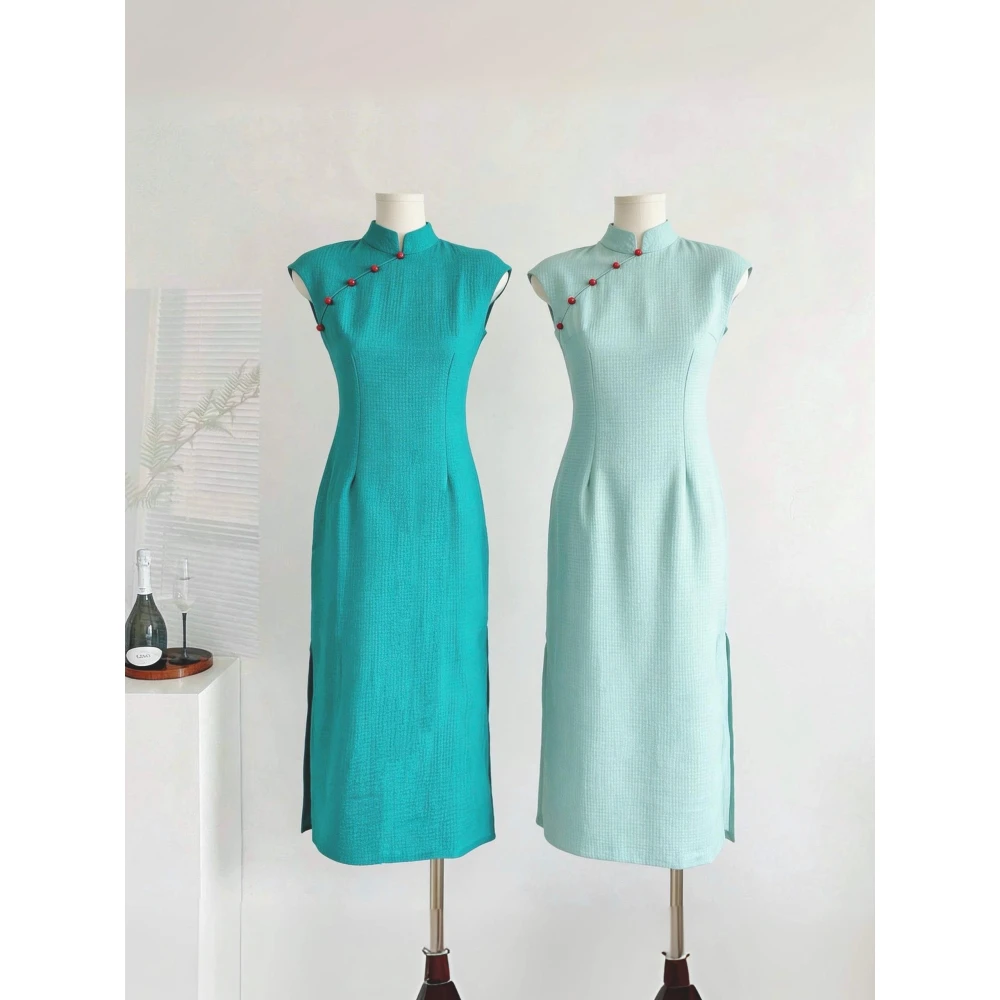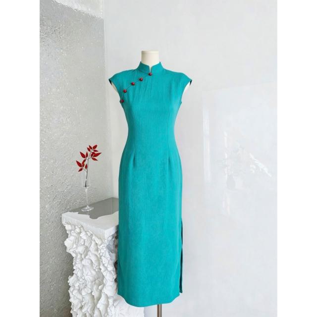 DAILY - MOOD 淩茜恣禾 碧城春曲'新中式冰絲皺改良旗袍女春夏明媚漂亮連衣裙