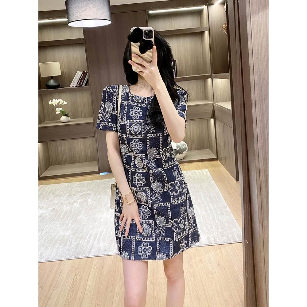 全店免關稅-DM 十三行品質 2025夏季新款時尚重工花朵刺繡亮片顯瘦連衣裙