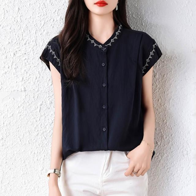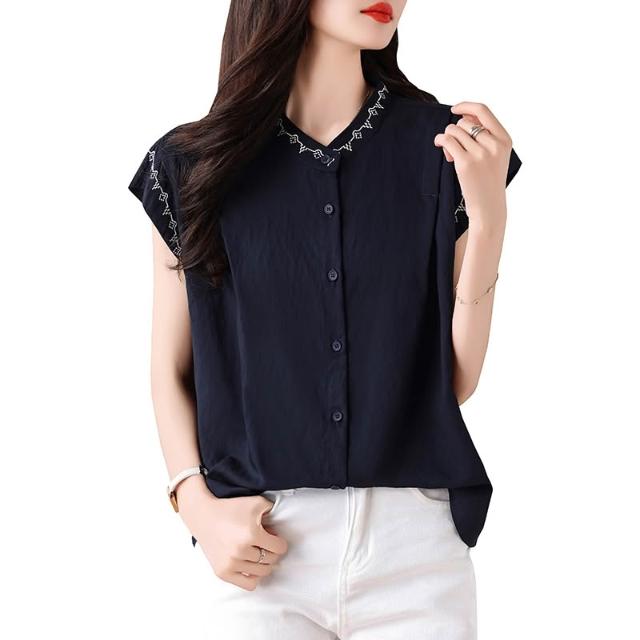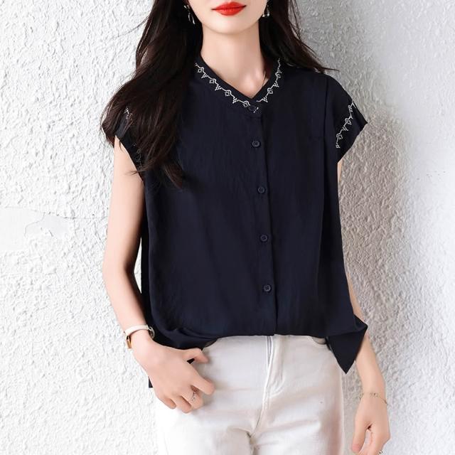 全店免關稅-DM 2025夏季新款無袖襯衫女重工刺繡外穿馬甲背心天絲苎麻氣質小衫