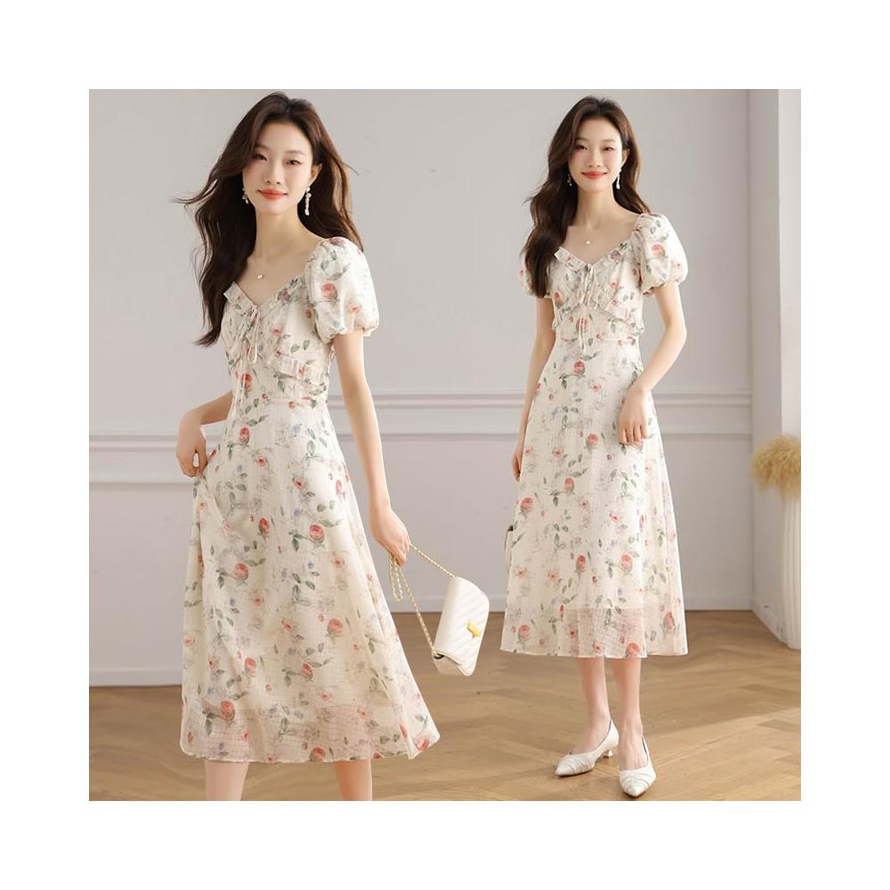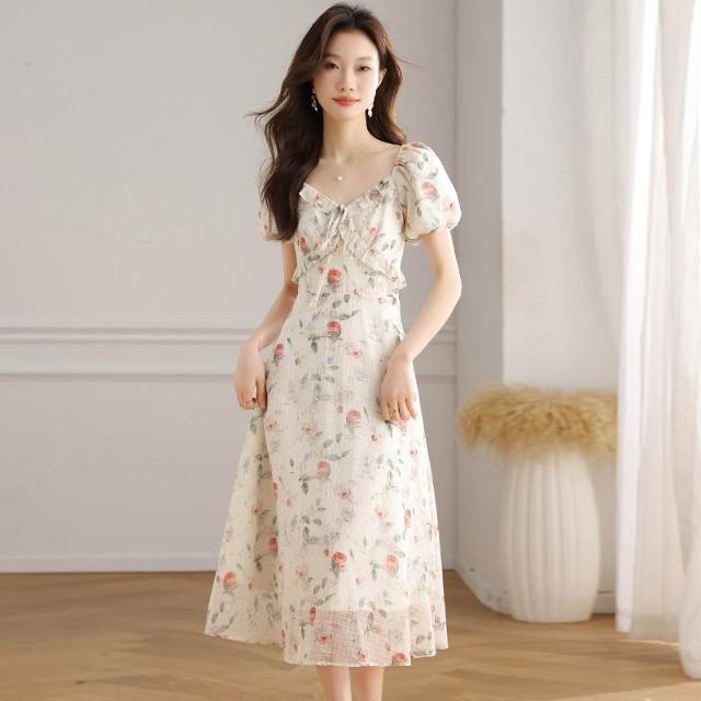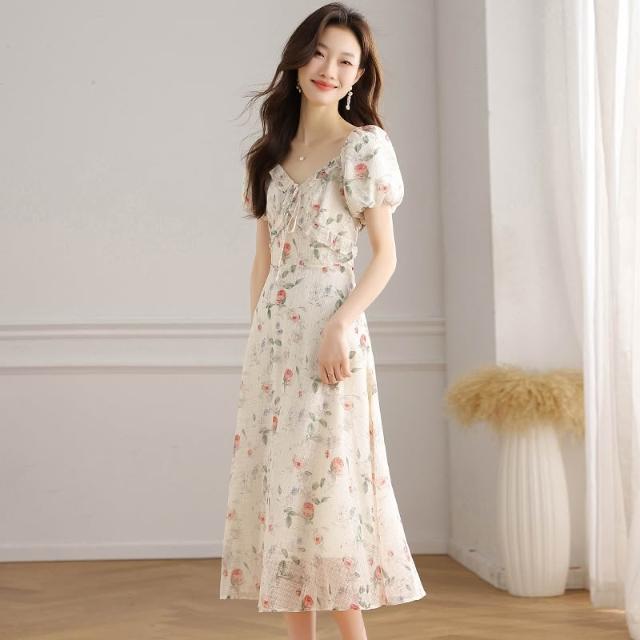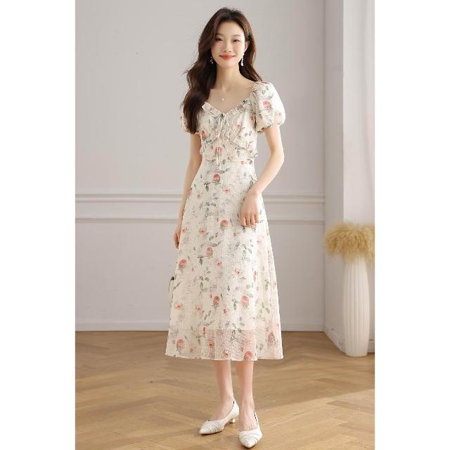 全店免關稅-DM 實拍 法式碎花連衣裙女2026夏季新款高級感顯瘦氣質桔梗長裙