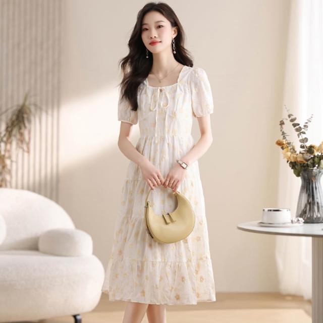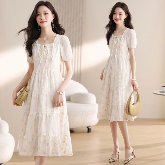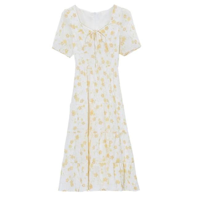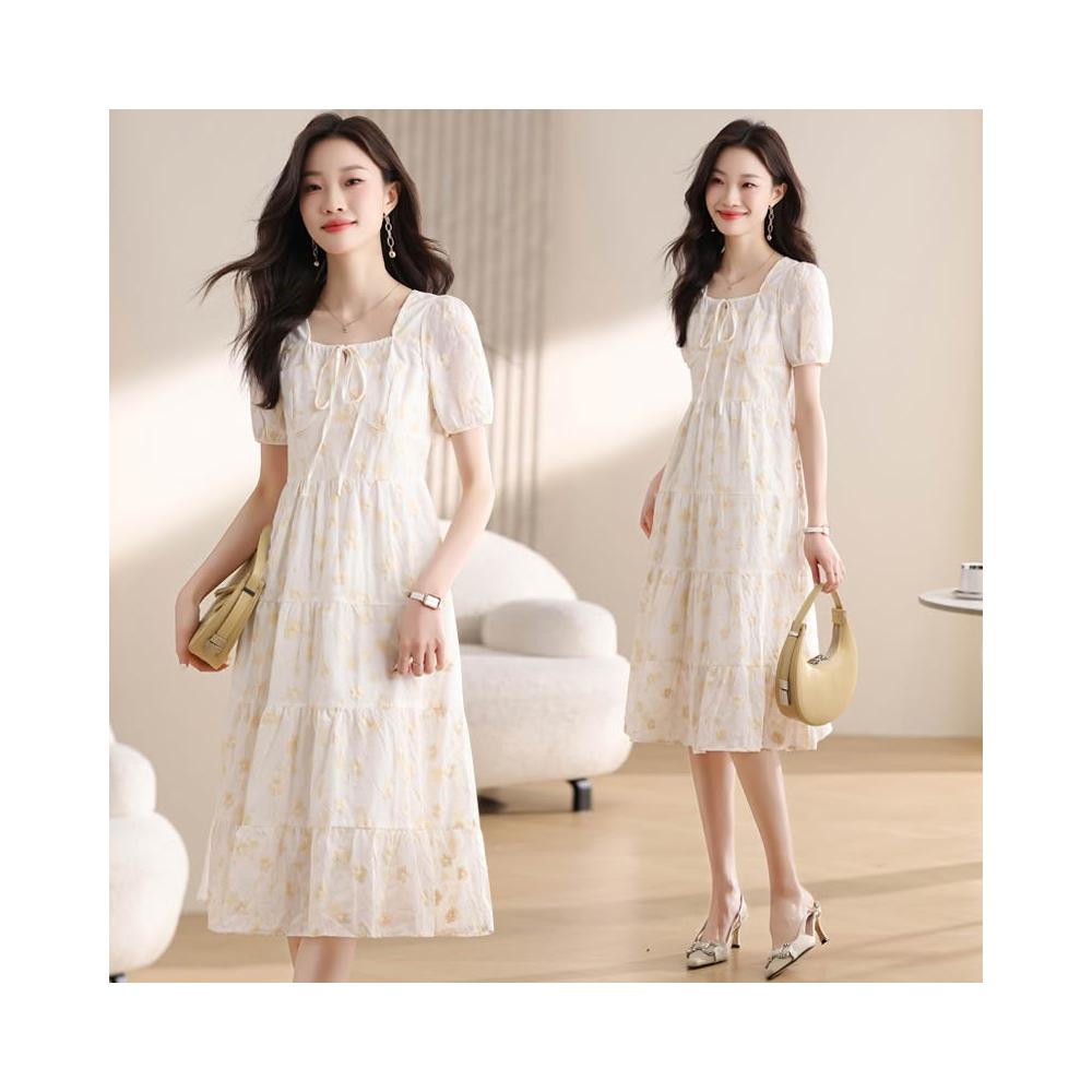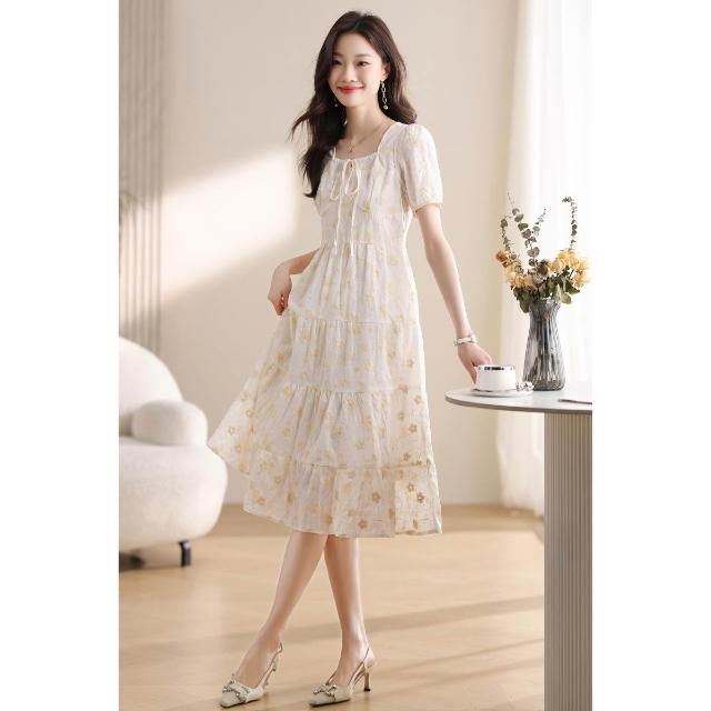 全店免關稅-DM 實拍 茶歇法式白色碎花連衣裙子女夏季新款小個子質感高級感收腰