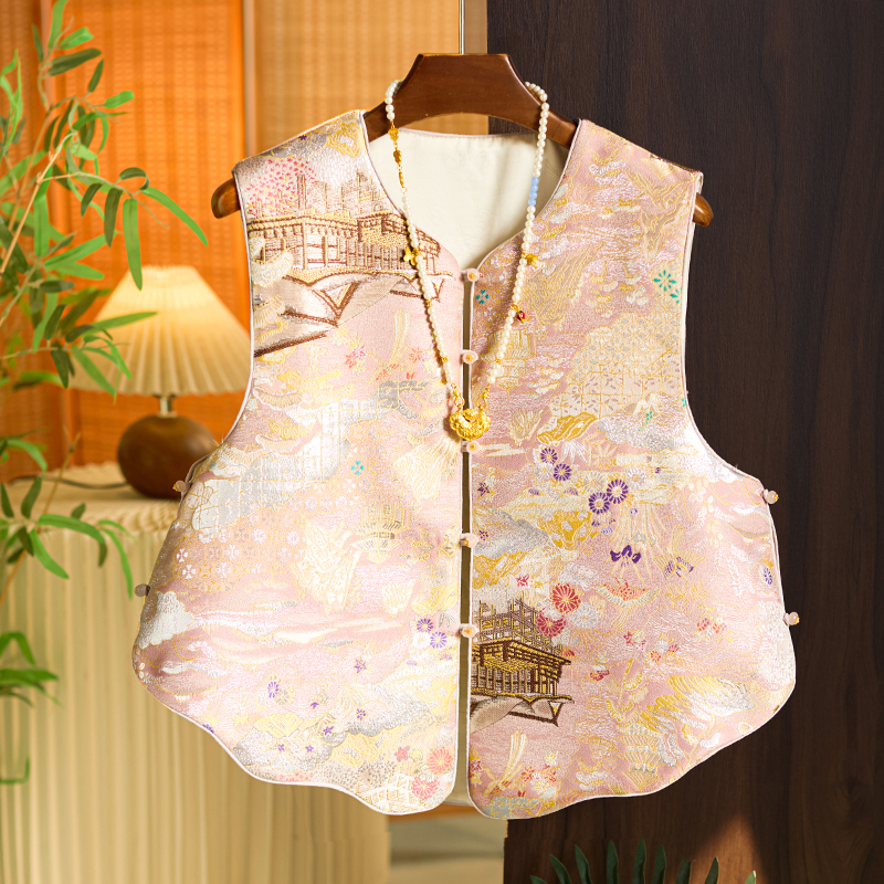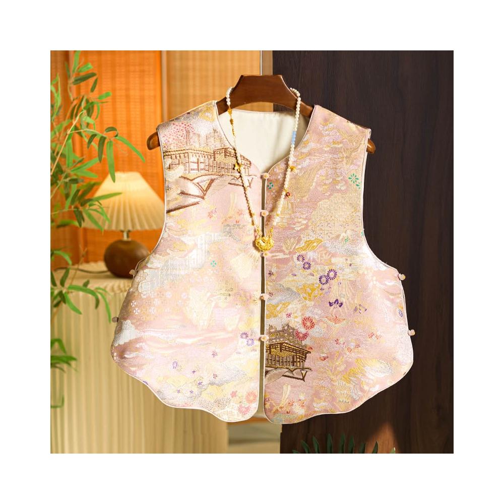 全店免關稅-DM 實拍 復古新中式馬甲女2026新款刺繡寬松雙面穿國風馬夾外套上衣