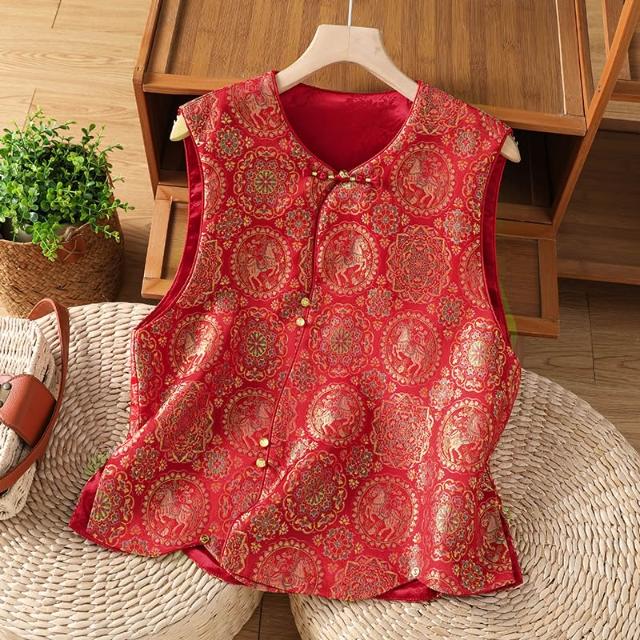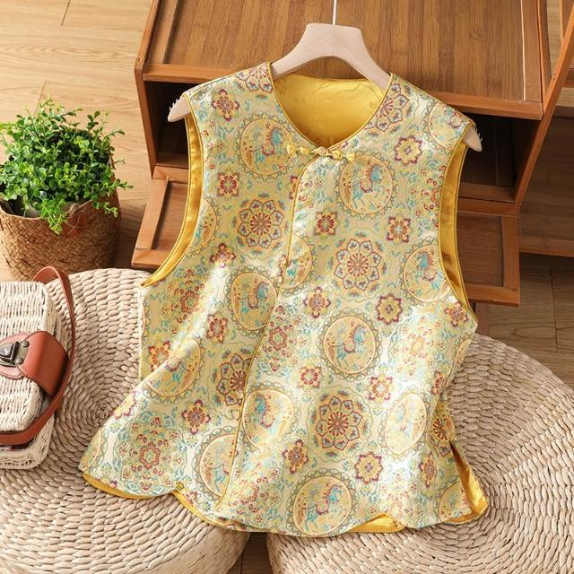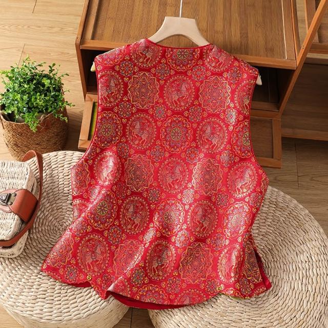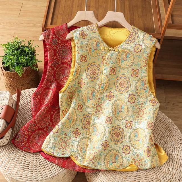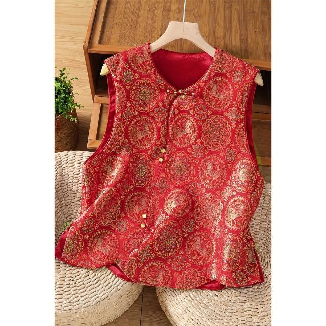 全店免關稅-DM 實拍 新中式古典漢服小圓領上衣刺繡馬甲織金織錦中國風外搭馬夾