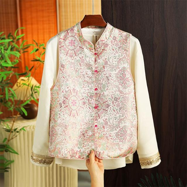 全店免關稅-DM 新中式國風馬甲2026春季新款女裝重工提花背心女盤扣宋錦坎肩外套