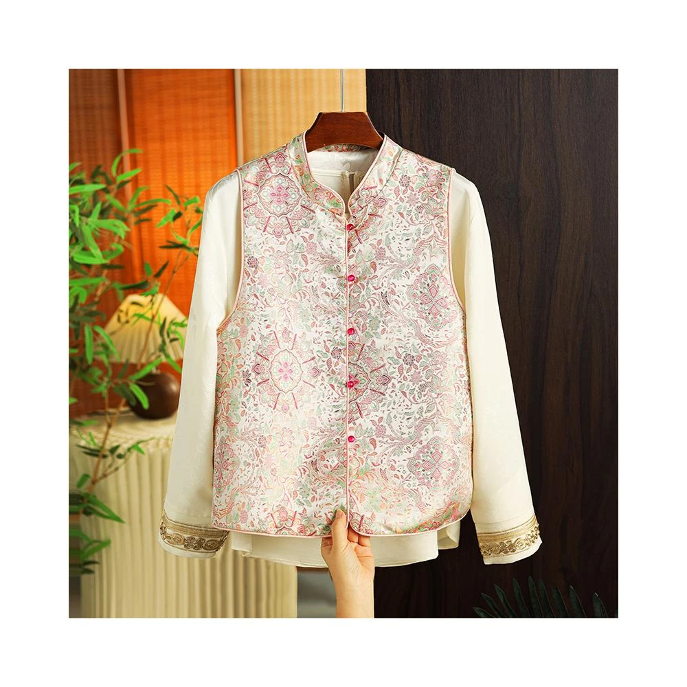 全店免關稅-DM 新中式國風馬甲2026春季新款女裝重工提花背心女盤扣宋錦坎肩外套