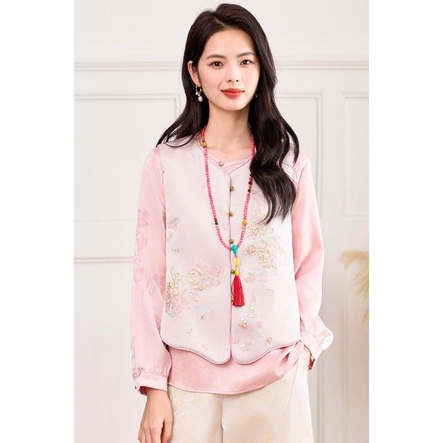 全店免關稅-DM 實拍香雲紗新中式馬甲背心女圓領提花媽媽馬夾坎肩外穿春秋