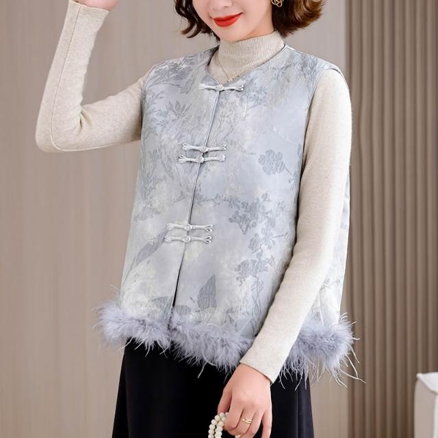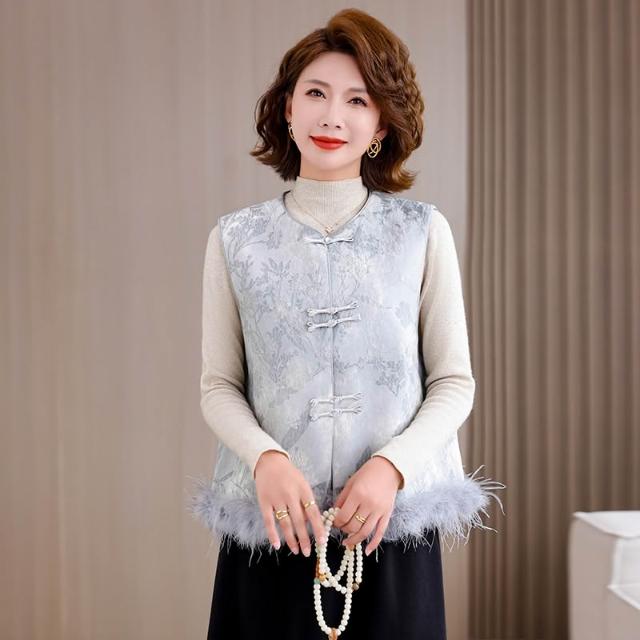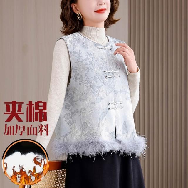 全店免關稅-DM 實拍 新中式漢服緞面重工提花夾棉圓領國風盤扣馬甲搭配背心馬夾