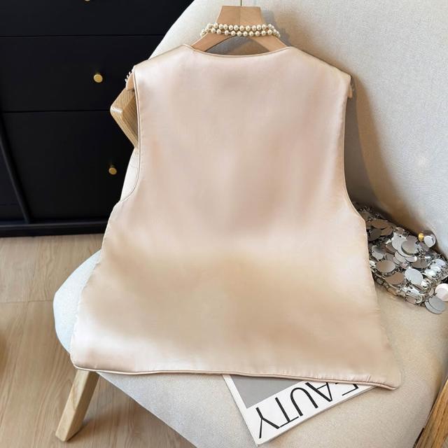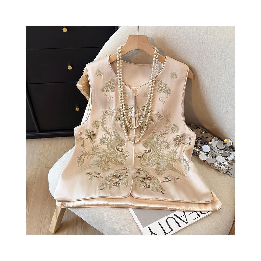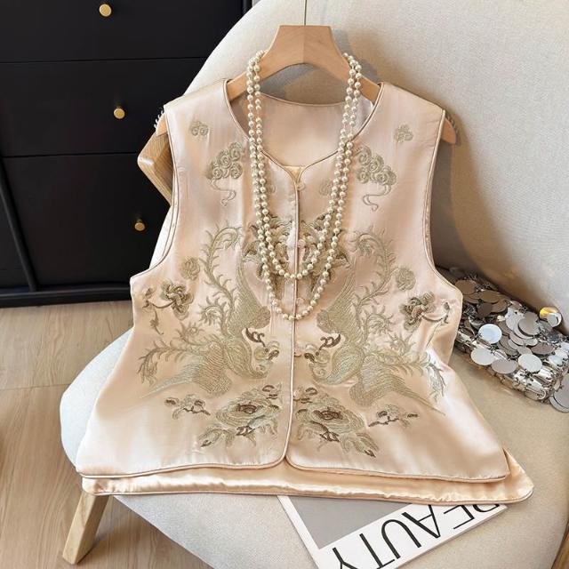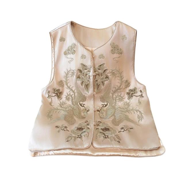 全店免關稅-DM 新中式國風重工刺繡馬甲背心女春季新款時髦減齡圓領緞面馬甲