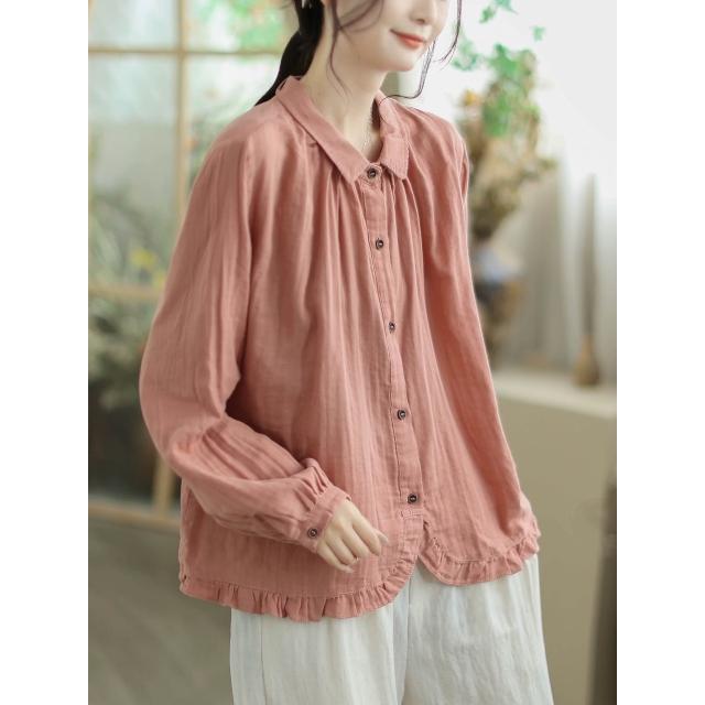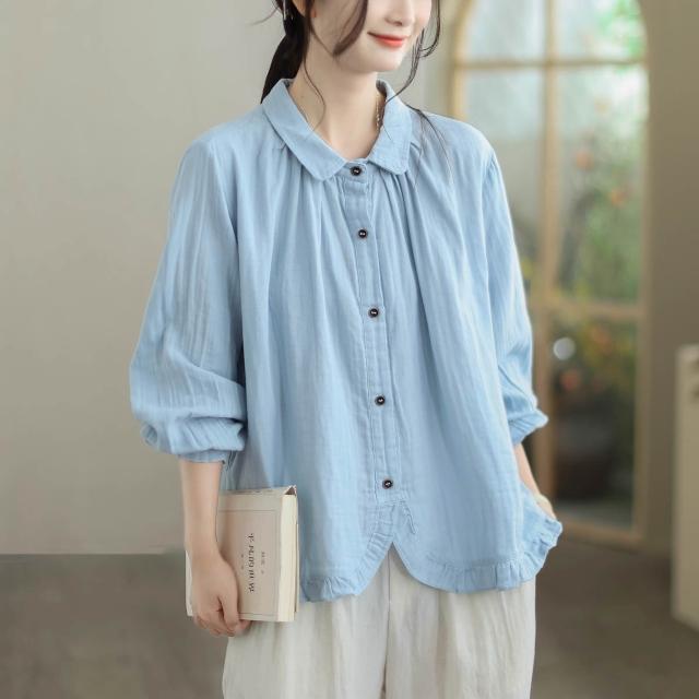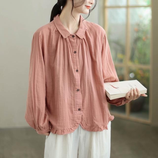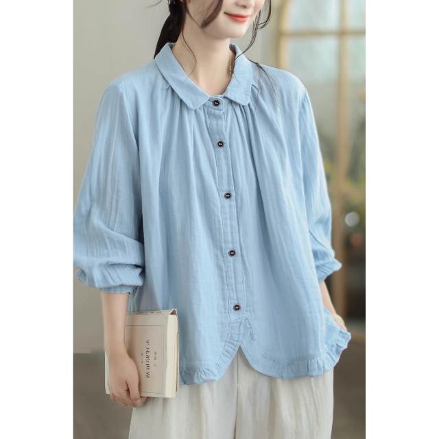 全店免關稅-DM 實拍襯衫女寬松減齡長袖雙層棉紗襯衫2026早春新款時尚洋氣上衣
