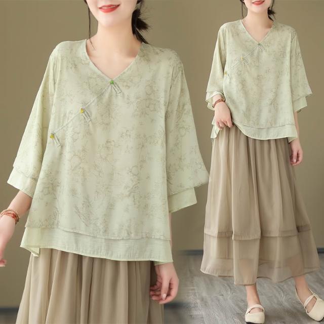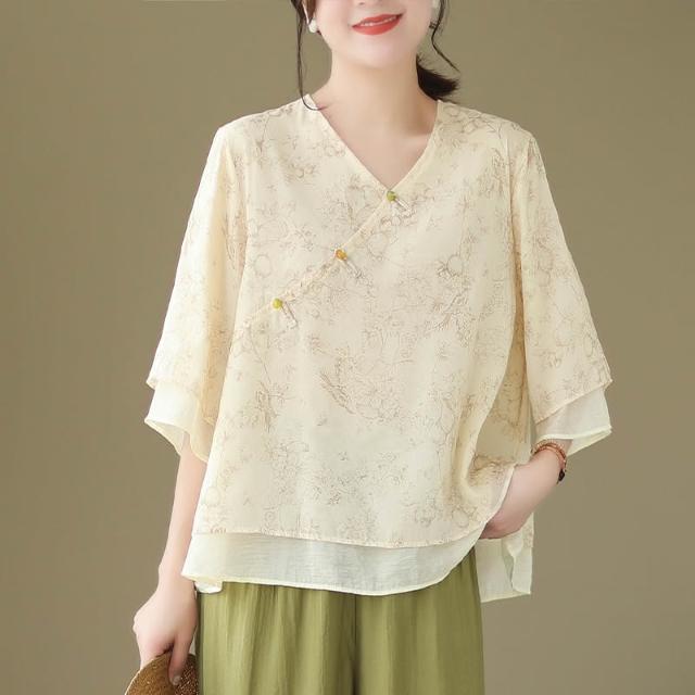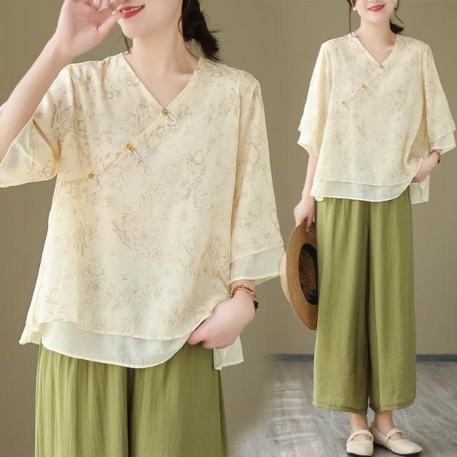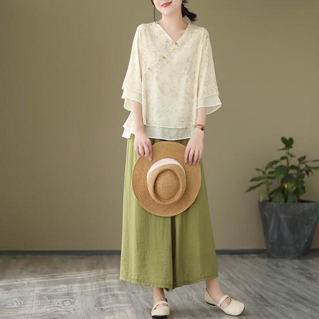 全店免關稅-DM 中式改良漢服女中國風禅意茶服文藝復古上衣女夏
