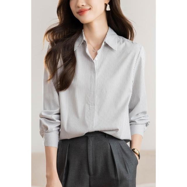 全店免關稅-DM 實拍 藍白條紋襯衫女長袖2026春季新款