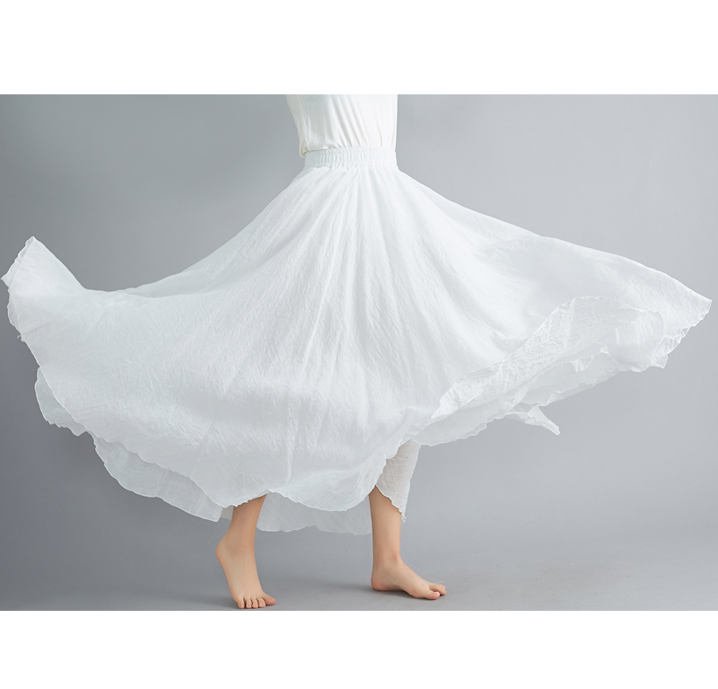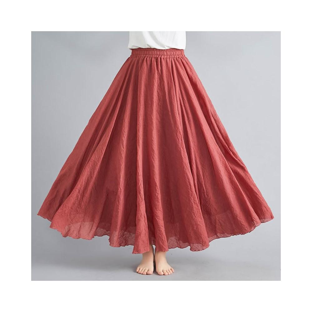 2026實拍森女文藝大碼棉麻半身裙松緊腰亞麻A字裙長款純色名族風