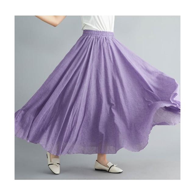 2026實拍森女文藝大碼棉麻半身裙松緊腰亞麻A字裙長款純色名族風