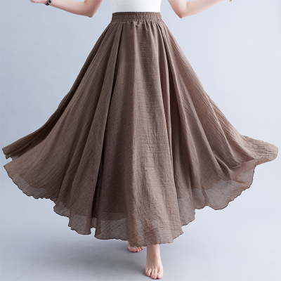 2026實拍森女文藝大碼棉麻半身裙松緊腰亞麻A字裙長款純色名族風