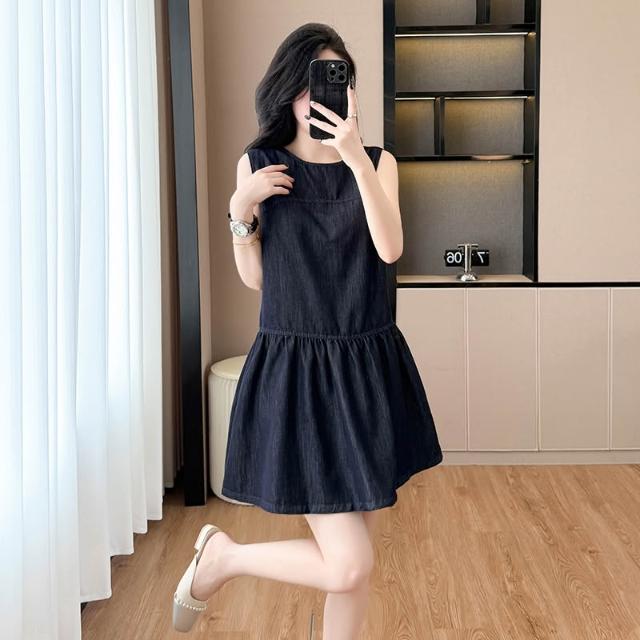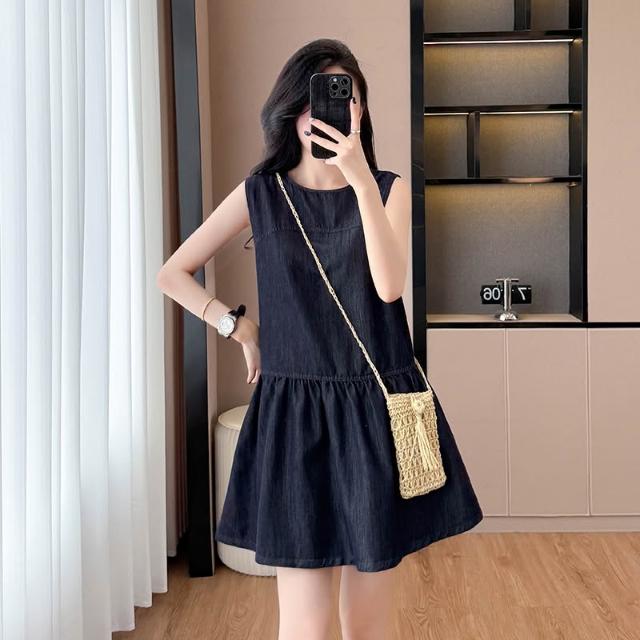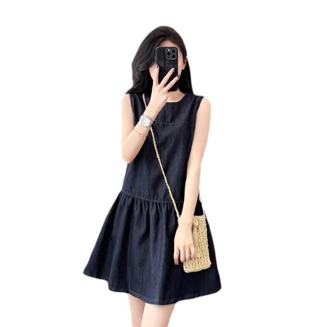 實拍夏季無袖連衣裙寬松減齡學生牛仔短裙牛仔連衣裙