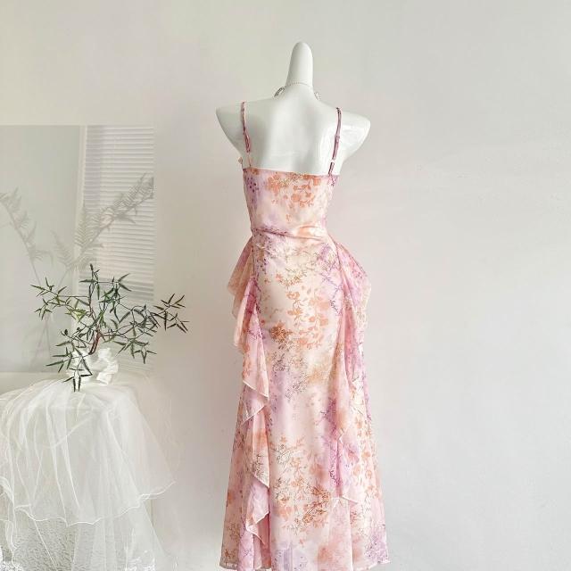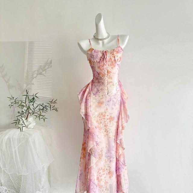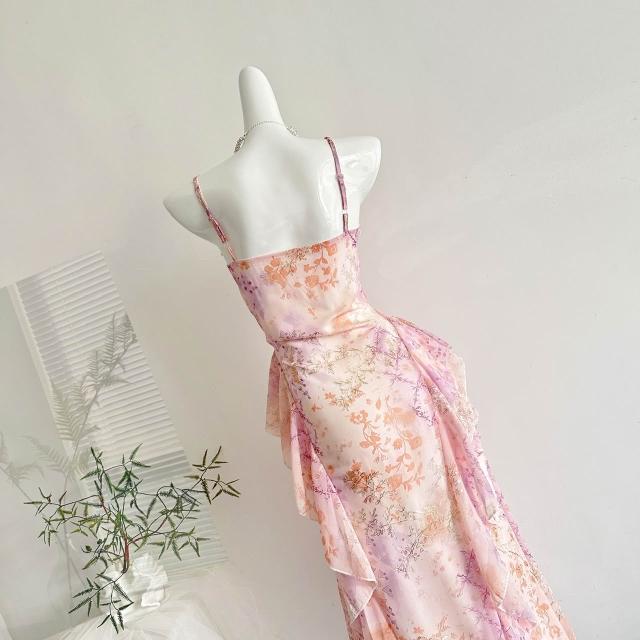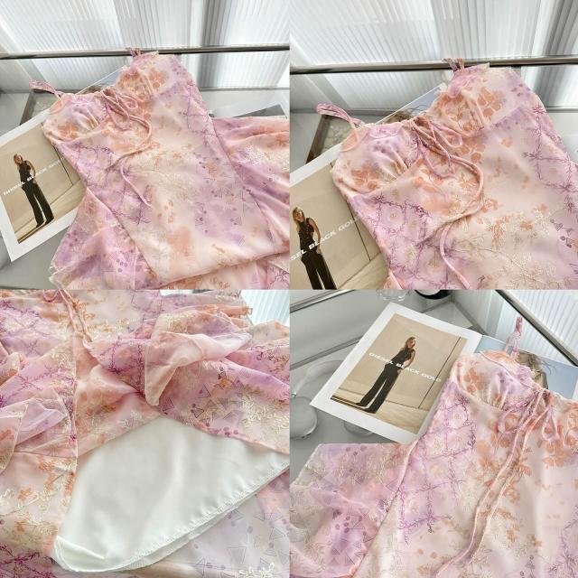 全店免稅 M-CO 慕寇 高級禮服 CloudSweet白雲甜 纖花問 新中式連衣裙提花刺繡吊帶裙夏粉色長裙