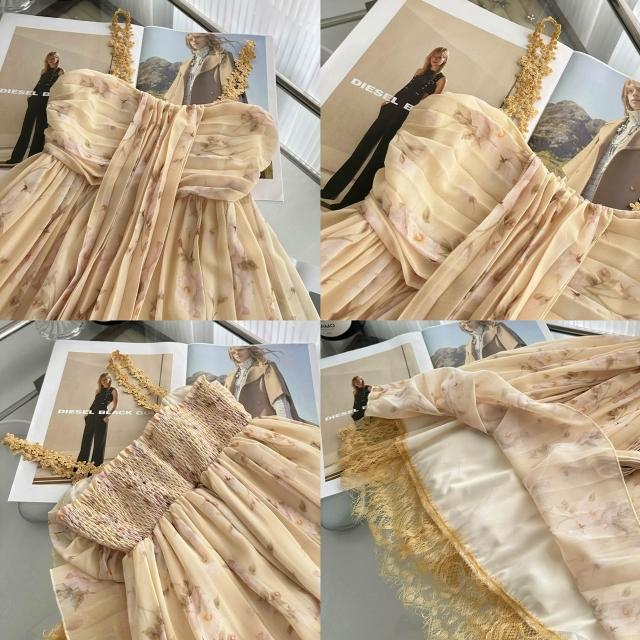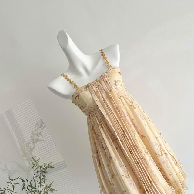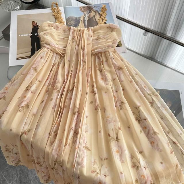 全店免稅 M-CO 慕寇 高級禮服 Acaine泰蘭德少女/黃色中長款碎花抹胸吊帶連衣裙女夏季甜美裙子