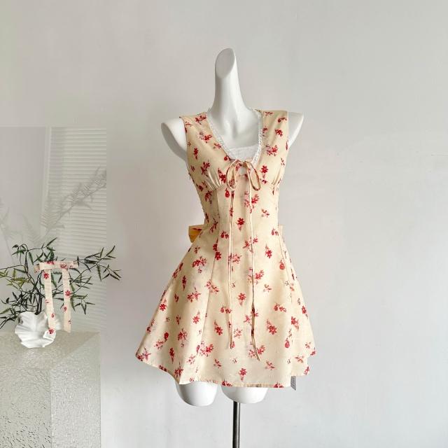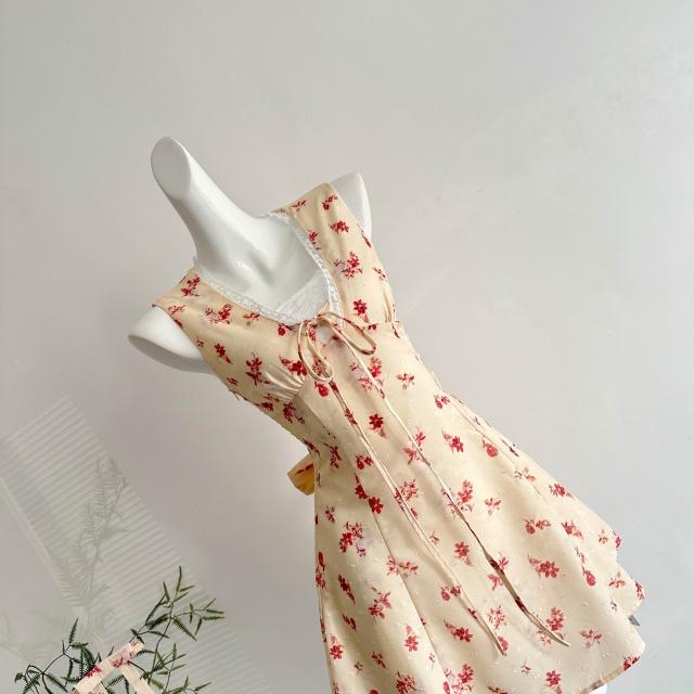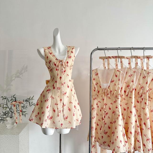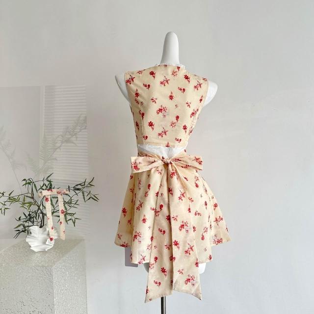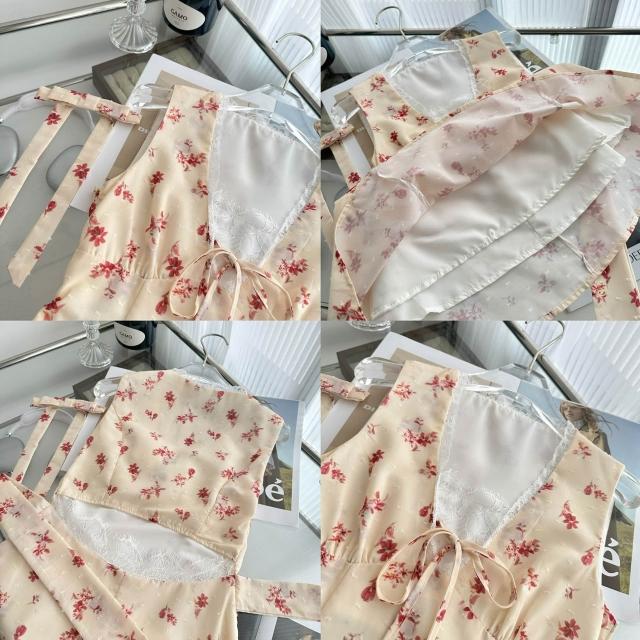 全店免稅 M-CO 慕寇 高級禮服 Q女家 新品9折花頌蜜糖/春日少女蕾絲花邊黃色碎花傘擺連衣裙