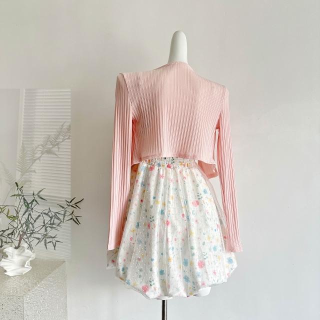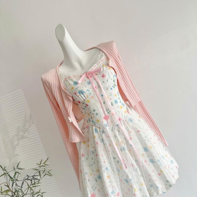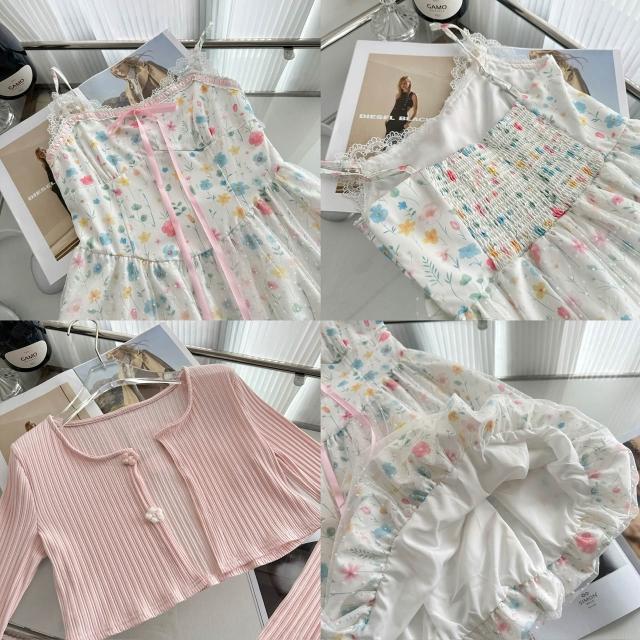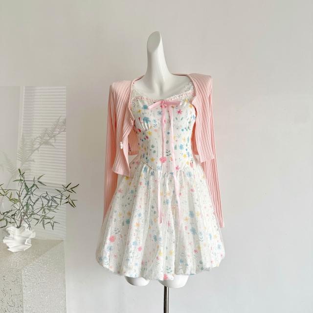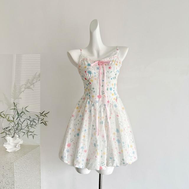 全店免稅 M-CO 慕寇 高級禮服 織物豬 花漾甜茶 甜美花卉吊帶連衣裙女春收腰顯瘦蓬蓬花苞短裙子