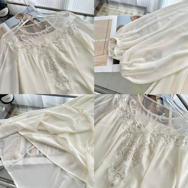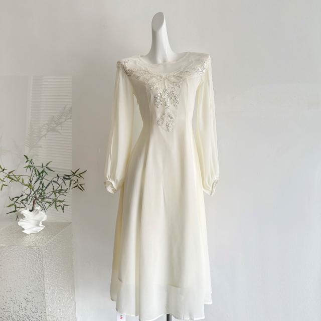 全店免稅 M-CO 慕寇 高級禮服 Sun雅喬月落無聲春裝長袖清冷感釘珠亮片網紗拼雪紡連衣長裙