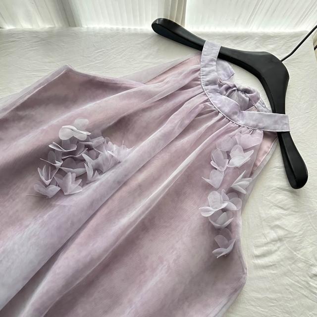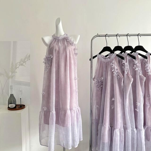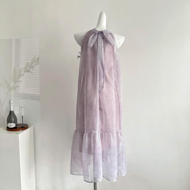 全店免稅 M-CO 慕寇 高級禮服 Lycheerose荔枝肉獨特漂亮絕美紫色無袖掛脖連衣裙女夏度假長裙子