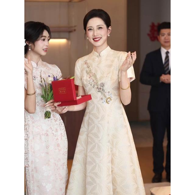 香槟色高端喜婆婆婚宴裝旗袍年輕小個子結婚媽媽婚禮禮服高貴洋氣 M-C 全店免運免稅