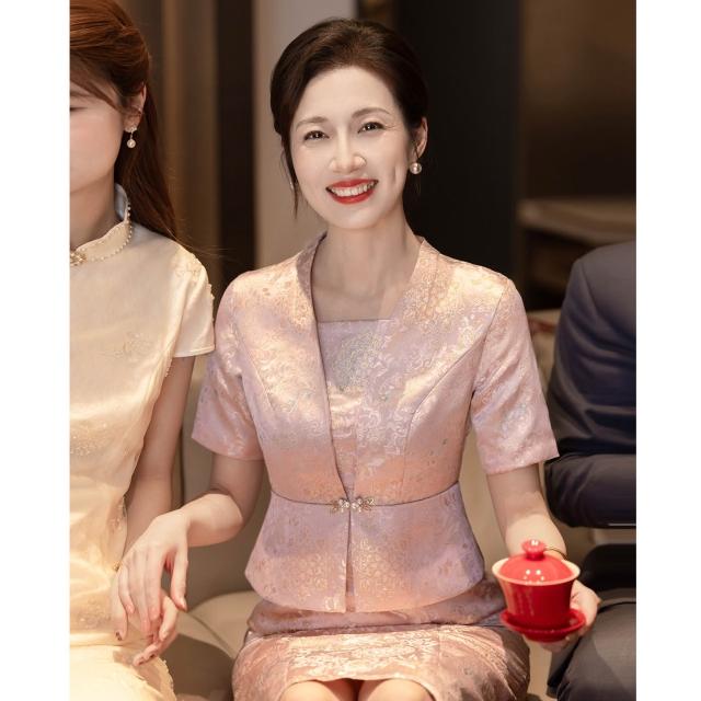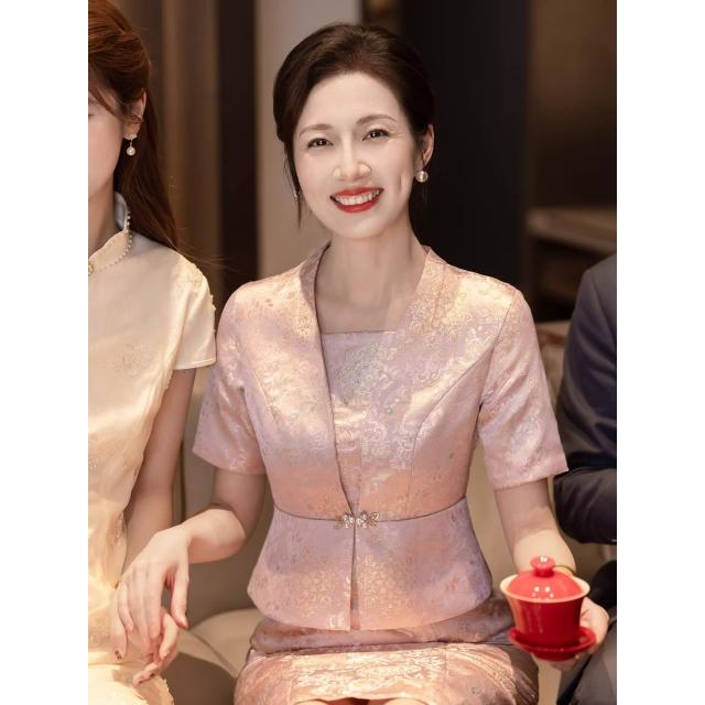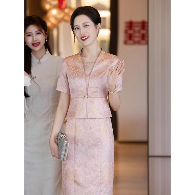 粉色喜婆婆婚宴裝旗袍高端年輕小個子媽媽婚禮禮服高貴新中式高檔 M-C 全店免運免稅
