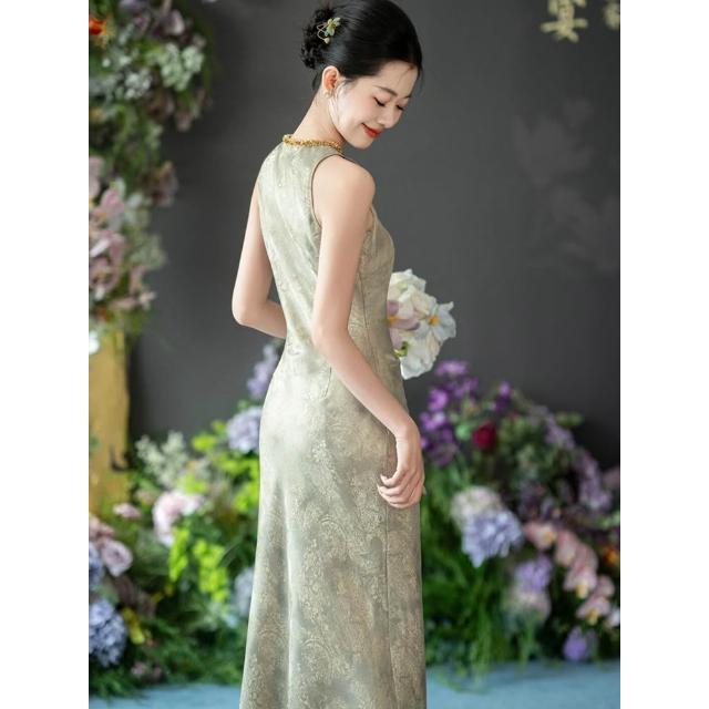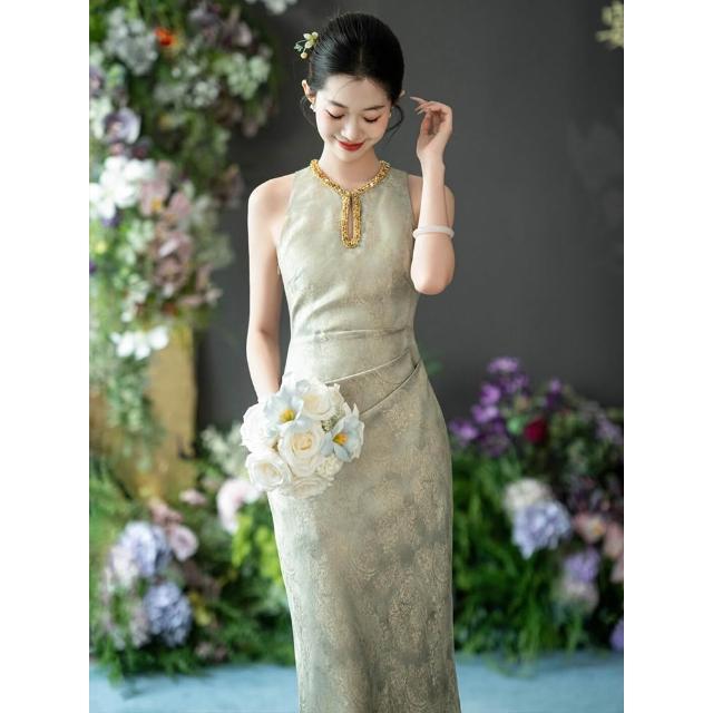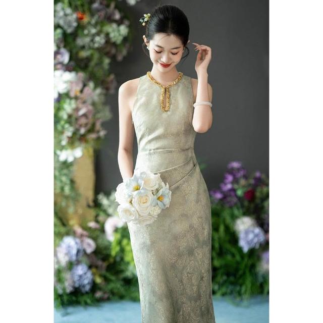 新中式晨拍禮服女新娘高級感氣質訂婚結婚設計感無袖敬酒服連衣裙 M-C 全店免運免稅