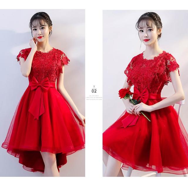 敬酒服新娘夏款結婚回門紅色孕婦大碼前短後長小禮服連衣裙女 M-C 全店免運免稅