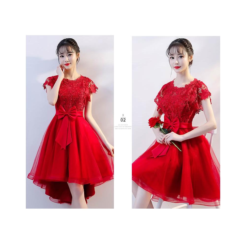 敬酒服新娘夏款結婚回門紅色孕婦大碼前短後長小禮服連衣裙女 M-C 全店免運免稅