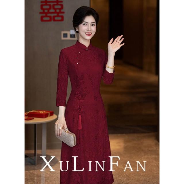新中式旗袍2026新款媽媽連衣裙結婚訂婚禮服喜婆婆婚宴裝高端 M-C 全店免運免稅