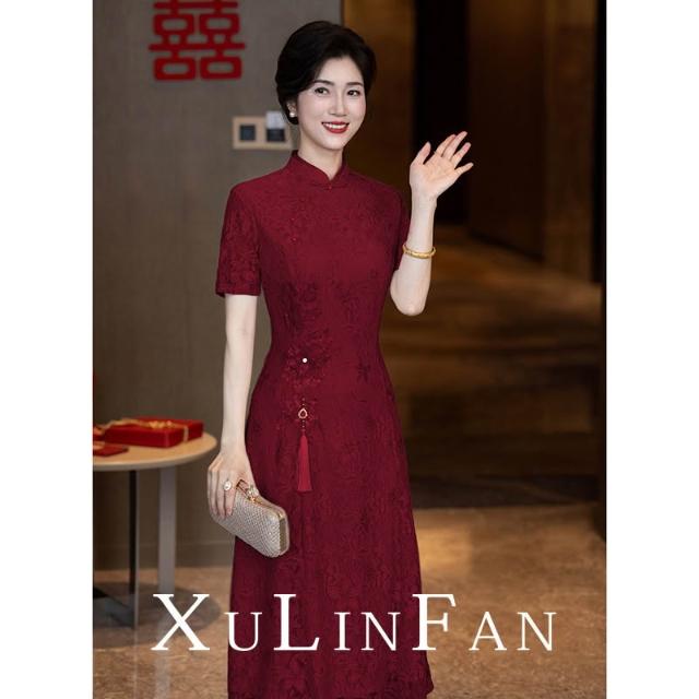 新中式旗袍2026新款媽媽連衣裙結婚訂婚禮服喜婆婆婚宴裝高端 M-C 全店免運免稅