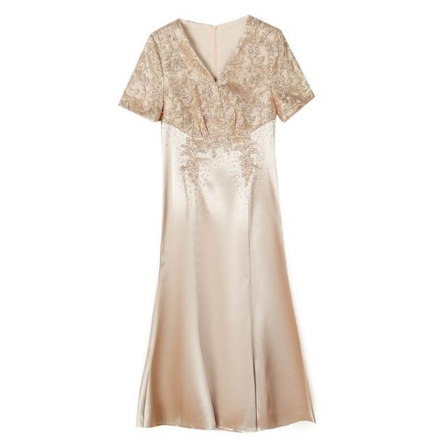 2026喜媽媽婚宴裝結婚喜服喜婆婆裝禮服新款夏季小個子旗袍香槟色 M-C 全店免運免稅
