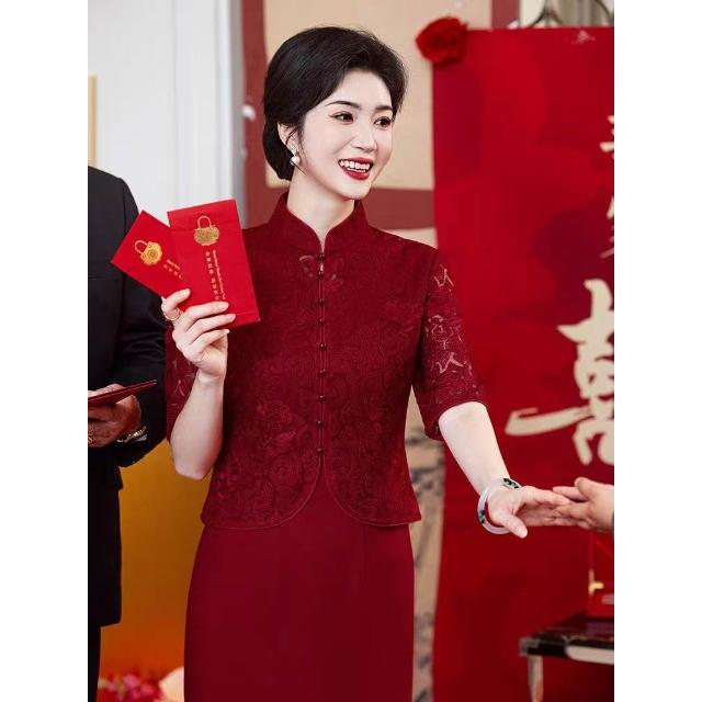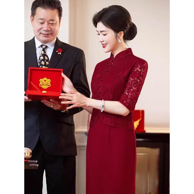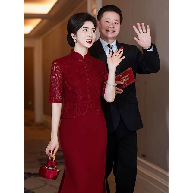 年輕喜婆婆婚宴裝旗袍2026新款高端結婚媽媽婚禮禮服高貴蕾絲洋氣 M-C 全店免運免稅