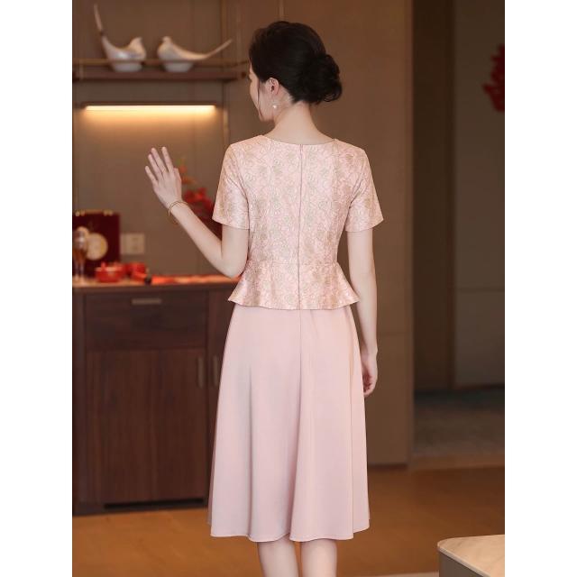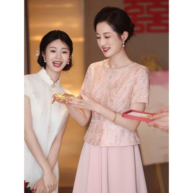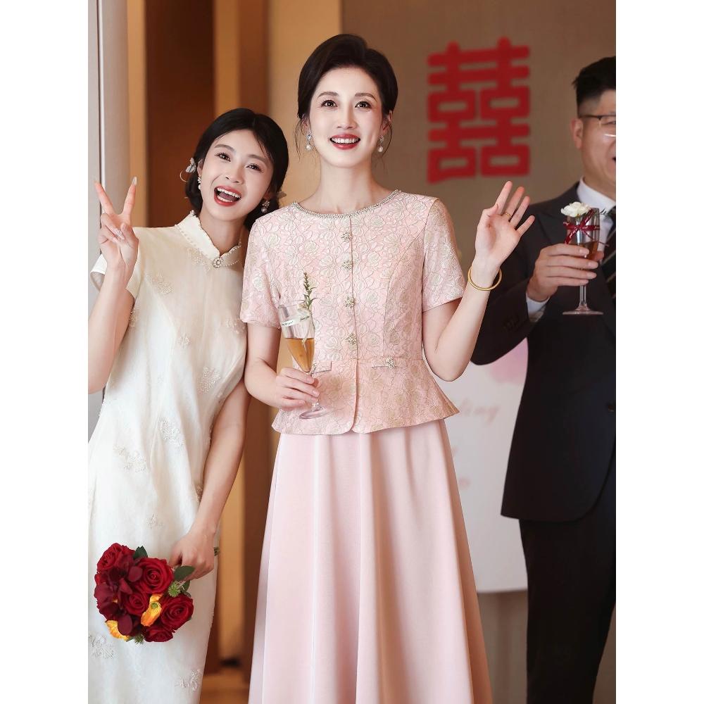 粉色喜婆婆婚宴裝旗袍高端年輕小個子媽媽婚禮晚禮服高檔奢華洋氣 M-C 全店免運免稅